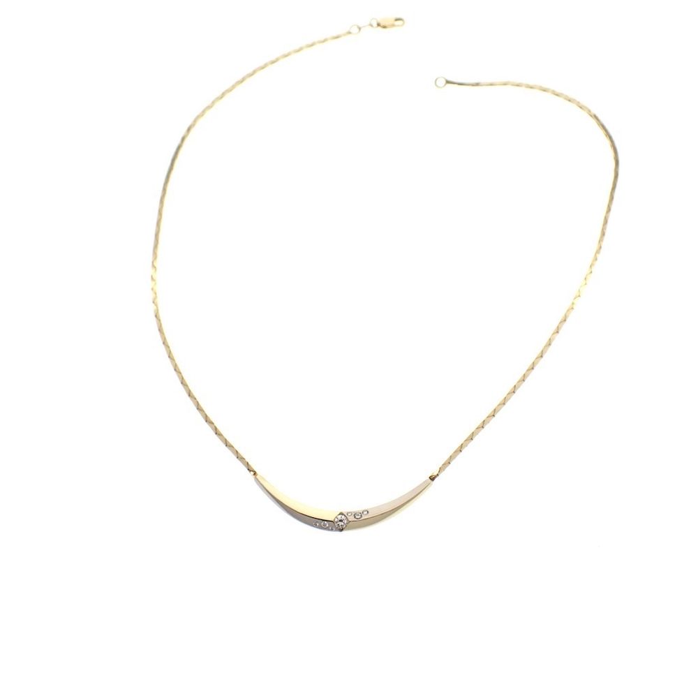 Two-tone gold flat cobra link necklace with diamonds; 0.24 ct.