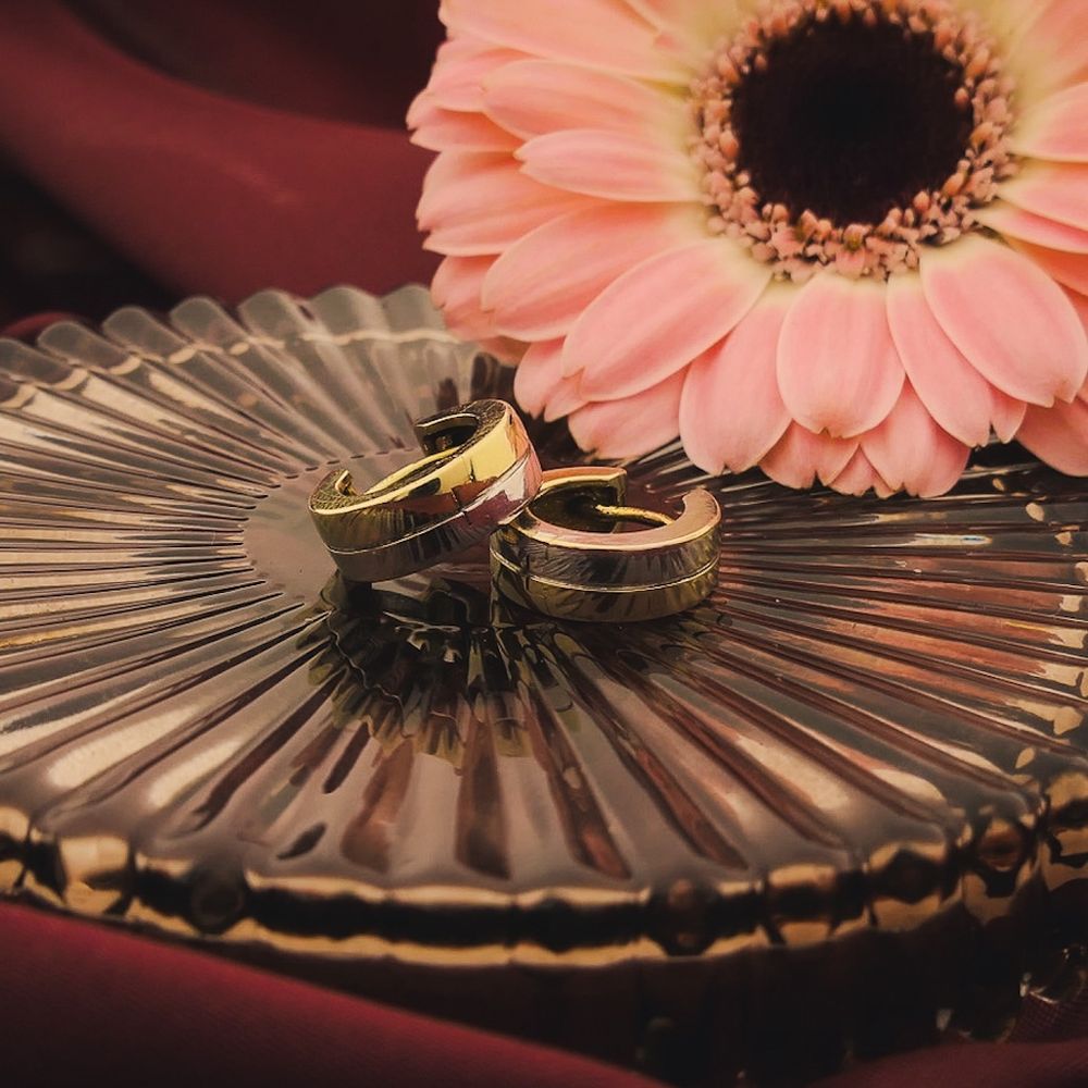 Two-tone gold hinged hoop earrings; Ø 14.7 mm