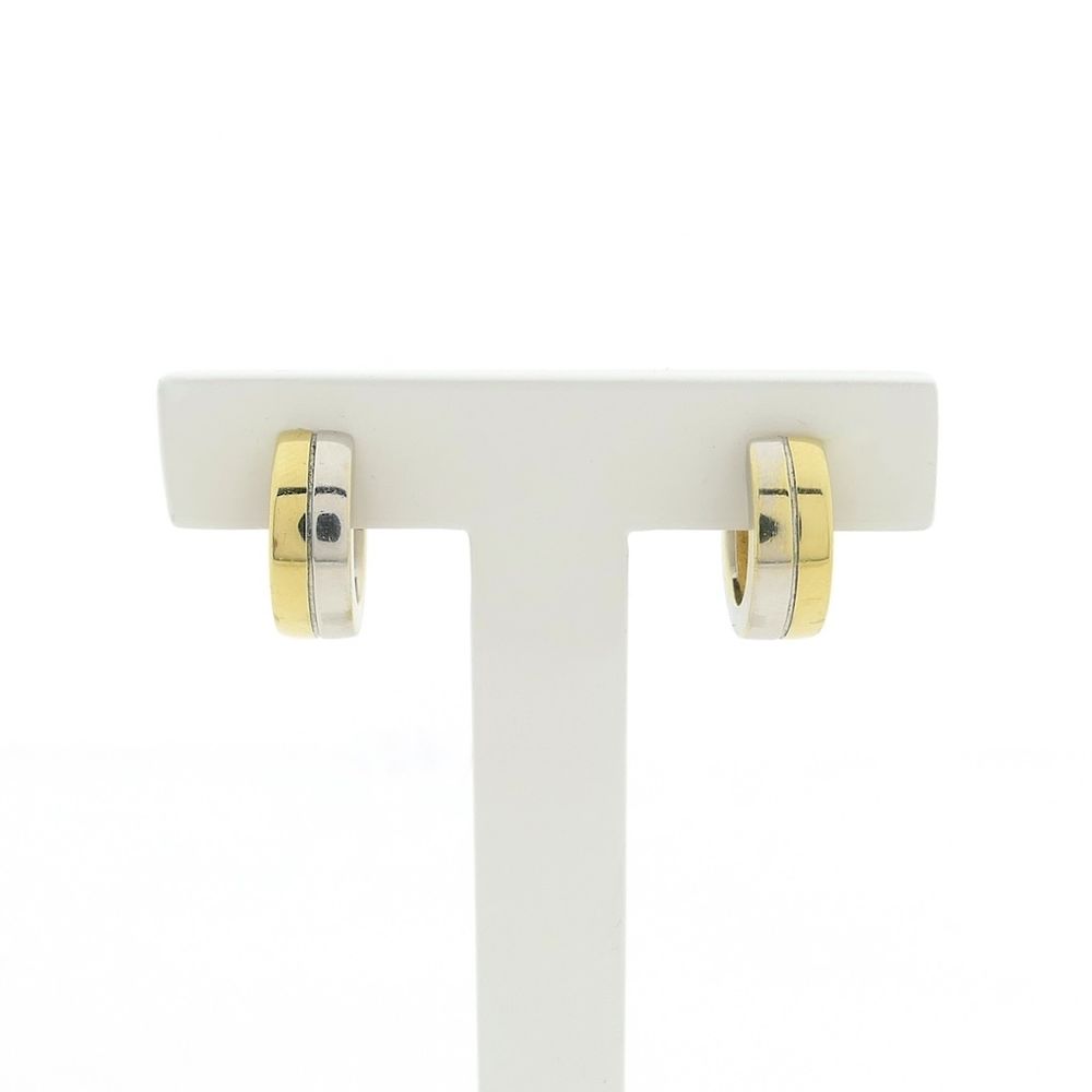 Two-tone gold hoop earrings. A subtle pair of earrings, this stylish set is crafted from 14-karat white and yellow gold (585/1000).