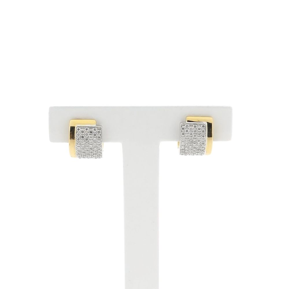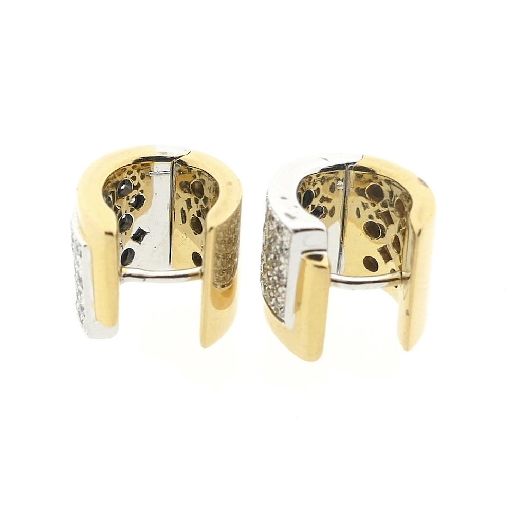 Two-tone gold hoop earrings. The earrings are pavé-set with a total of approximately 0.51 ct. of diamonds in white gold, making them sparkle even more beautifully. This luxurious pair of earrings is crafted from 18-karat white and yellow gold (750/1000).