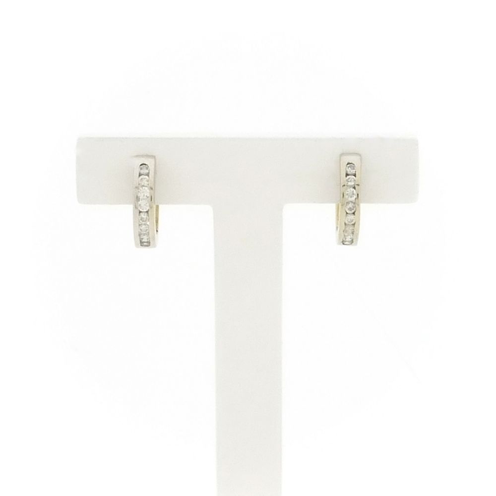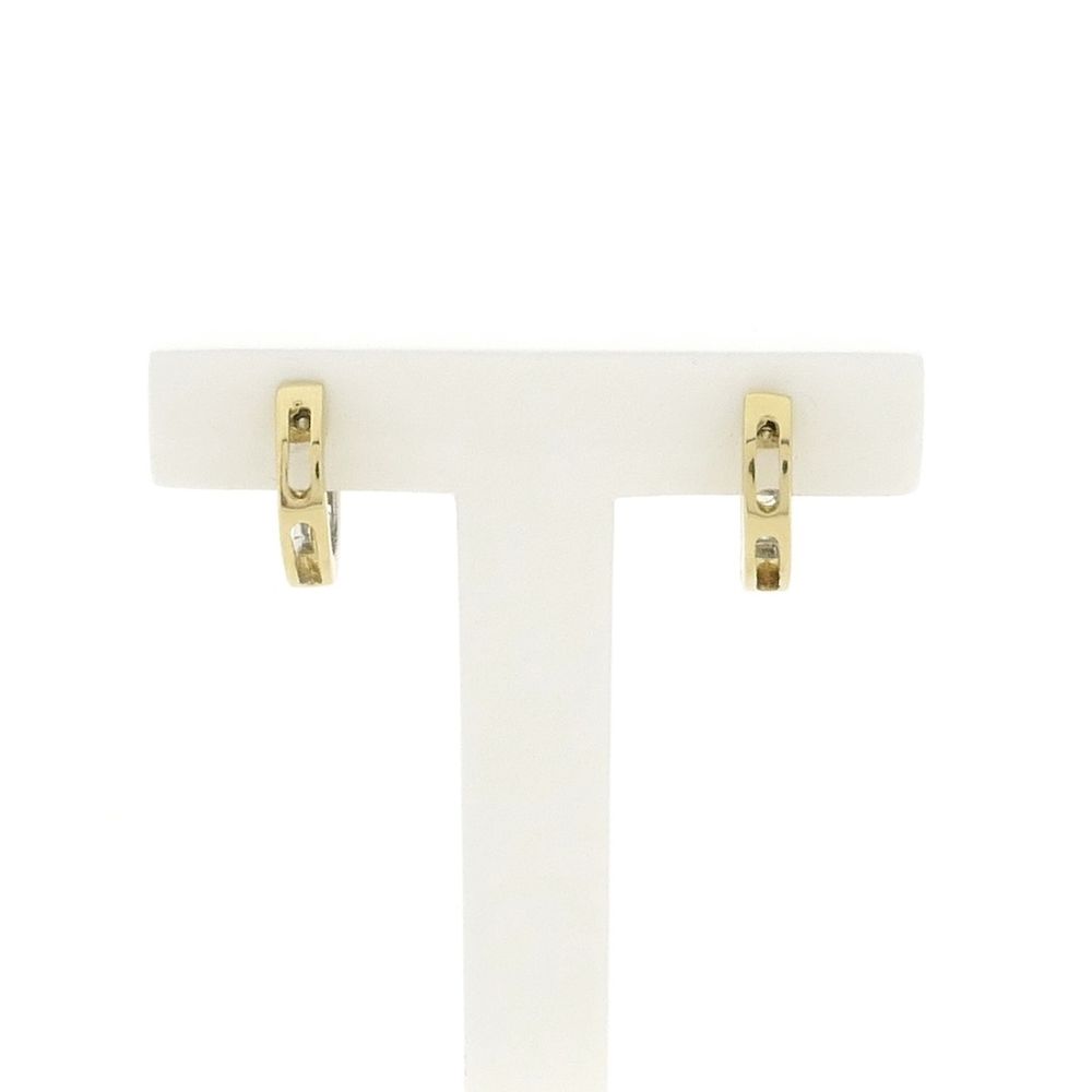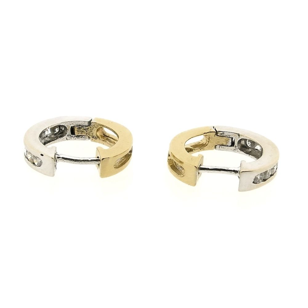Two-tone gold hoop earrings with zirconia. A subtle pair of earrings. The white gold section is set with eight round, brilliant-cut zirconia stones. These stylish earrings are crafted from 14-karat white and yellow gold (585/1000).