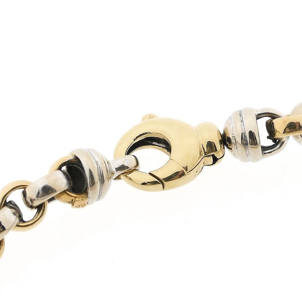 Two-tone gold jasseron link bracelet. This is a continuous chain of circular, semi-hollow links. This type of link has been made for centuries and is a classic of its kind. A timeless bracelet. The bracelet is made of 14-karat white and yellow gold (585/1000).