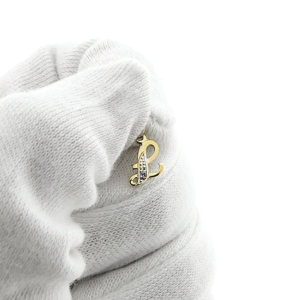 Two-tone gold pendant of the letter L with diamond; 0.01 ct.