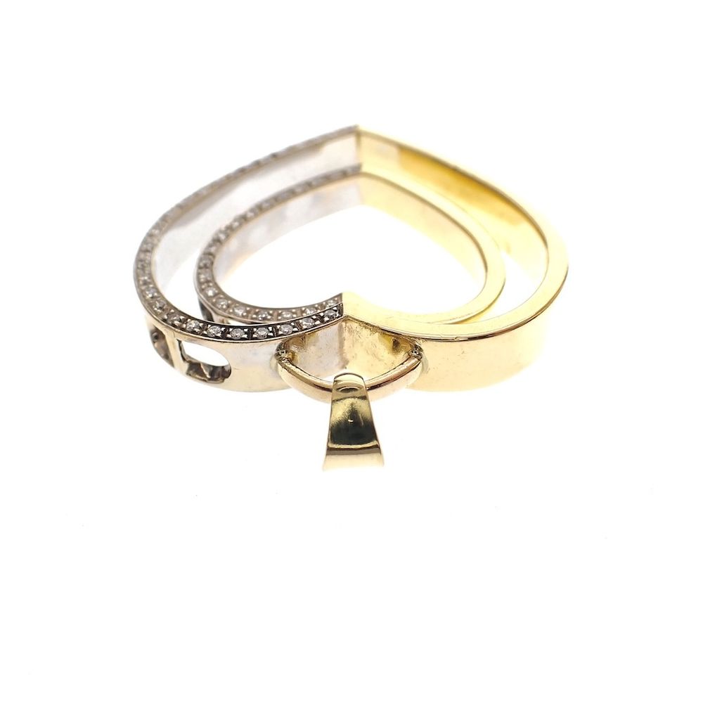 Two-tone gold pendant with a large heart and diamonds; 0.23 ct.