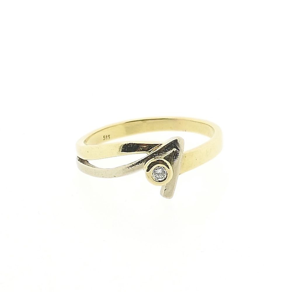 Two-tone gold ring with diamond; 0.02 ct.