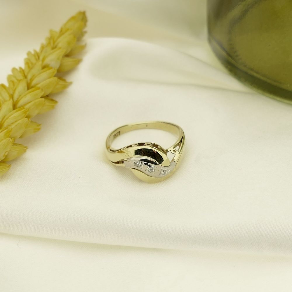 Two-tone gold ring with diamond; 0.06 ct.