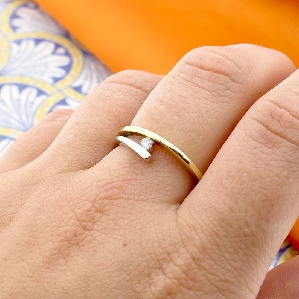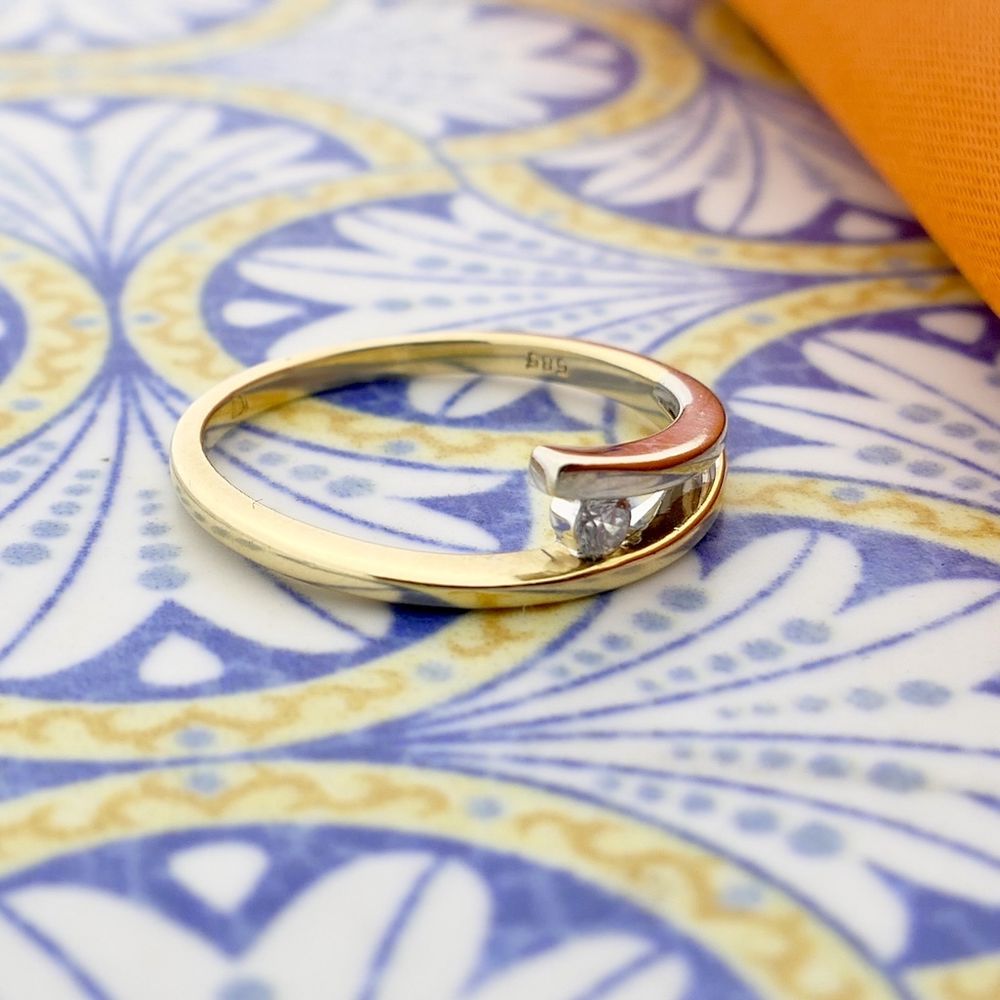 Two-tone gold ring with diamond; 0.07 ct.