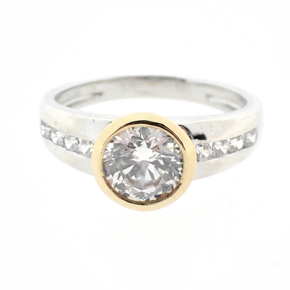 Two-tone gold ring with zirconia stones