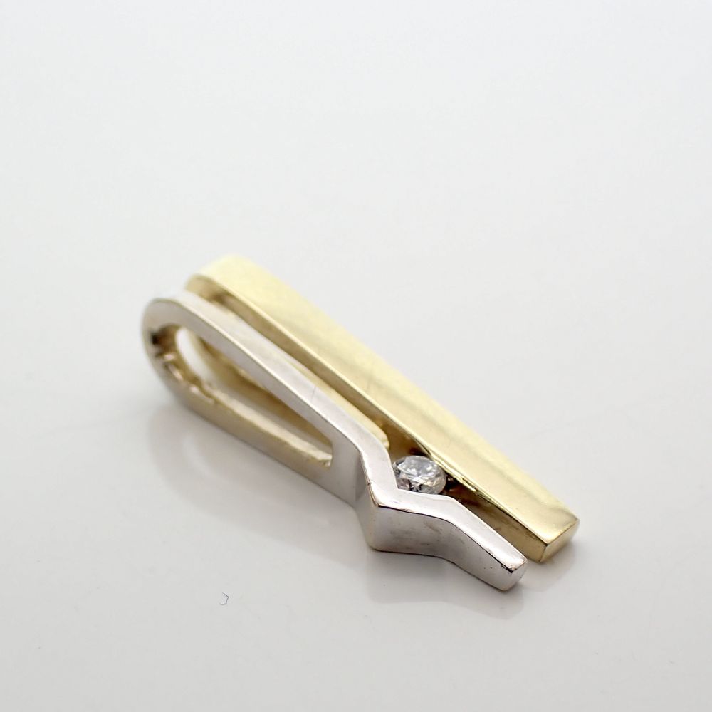Two-tone gold solitaire pendant with 0.03 ct diamond.