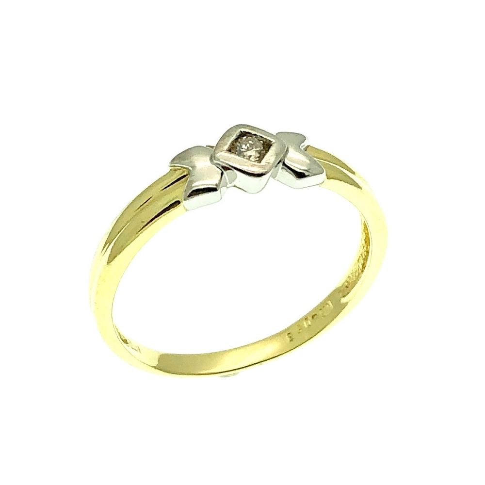 Two-tone gold solitaire ring with 0.04 ct diamond.