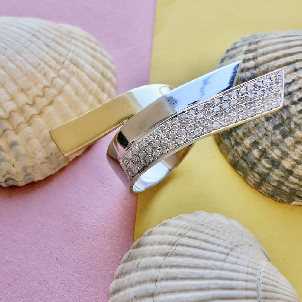 Two-tone gold statement ring with diamonds; approx. 0.83 ct.