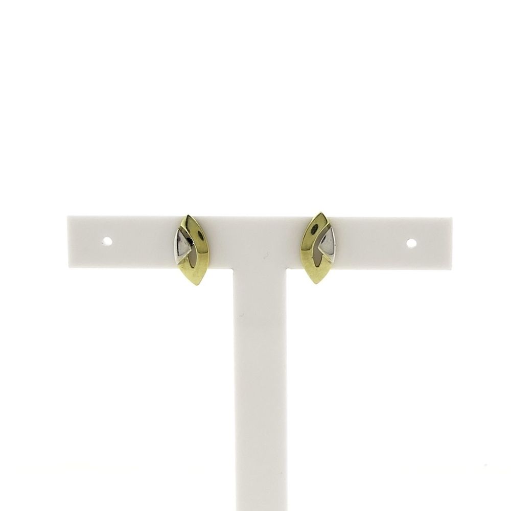 Two-tone gold stud earrings. This elegant set is crafted from 14-karat white and yellow gold (585/1000).