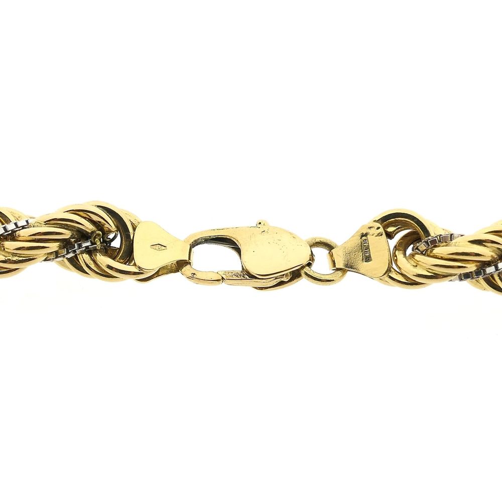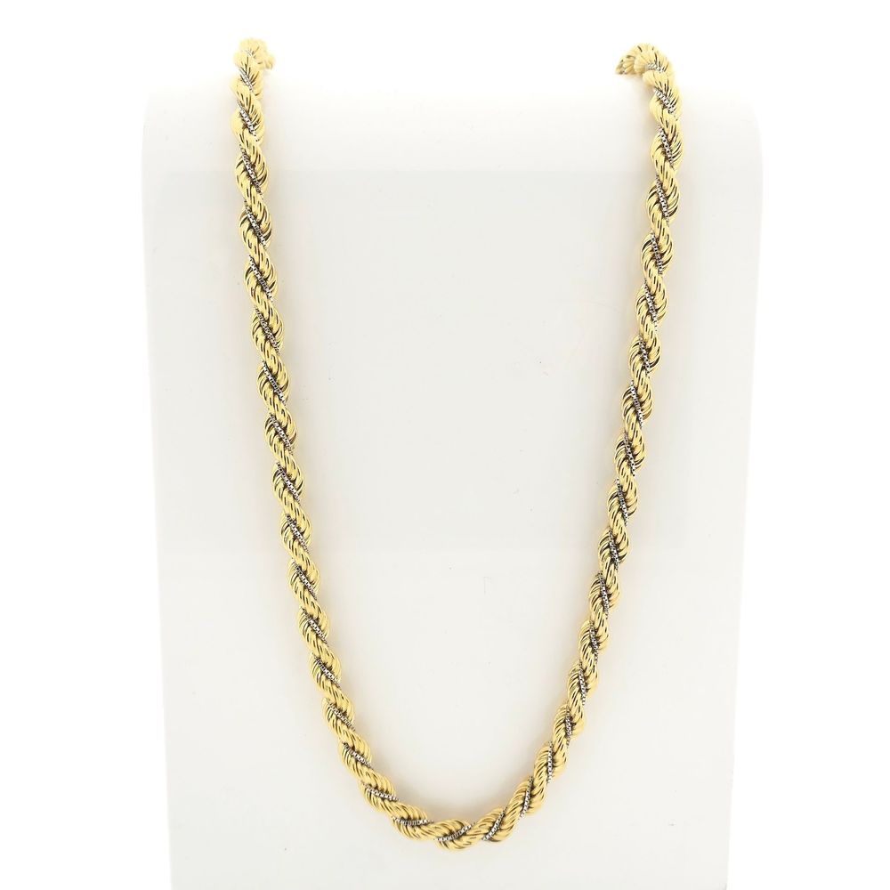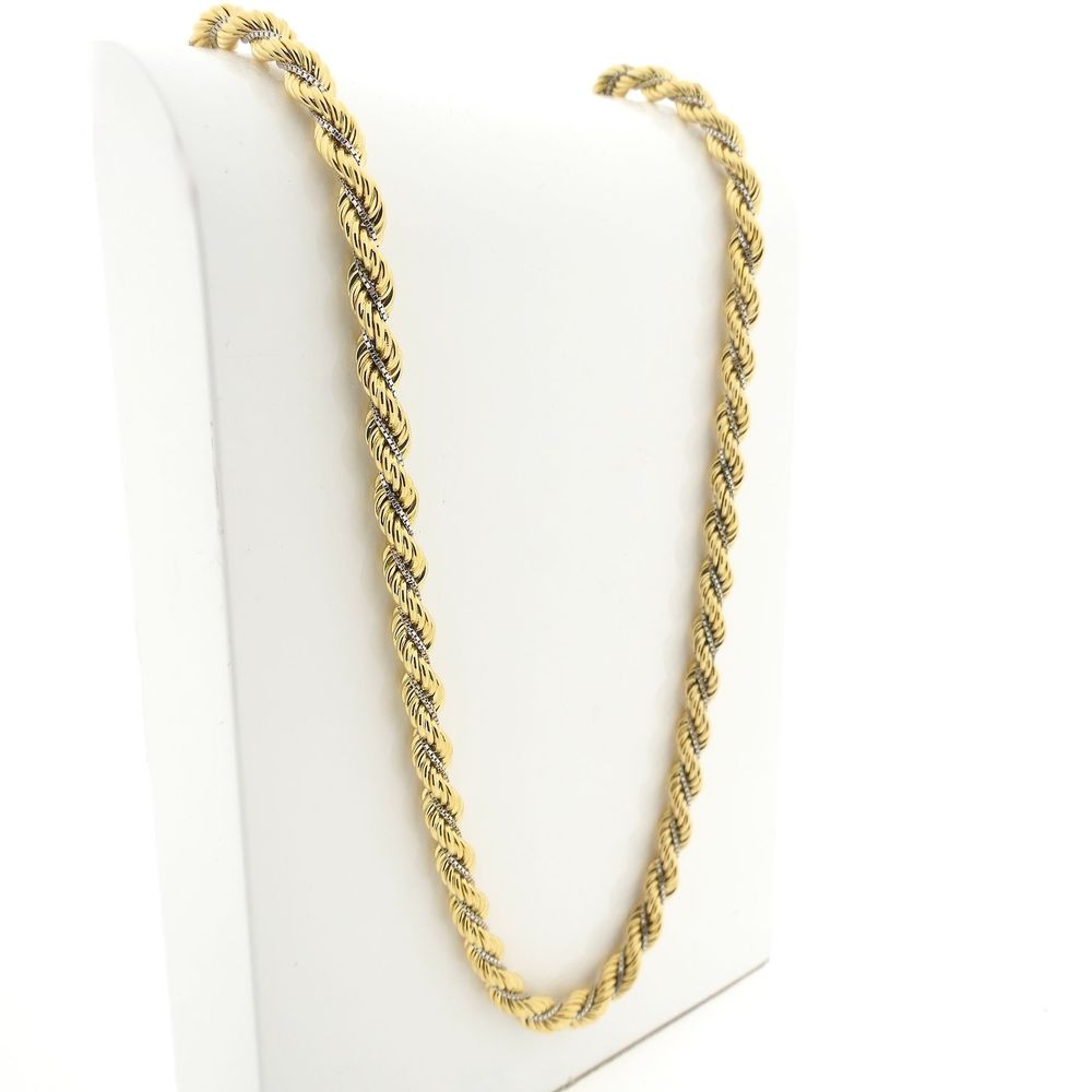 Two-tone gold twisted/Venetian link necklace. The necklace features an additional white gold Venetian link, giving it a luxurious look. This exclusive piece is crafted from 18-karat white and yellow gold (750/1000).