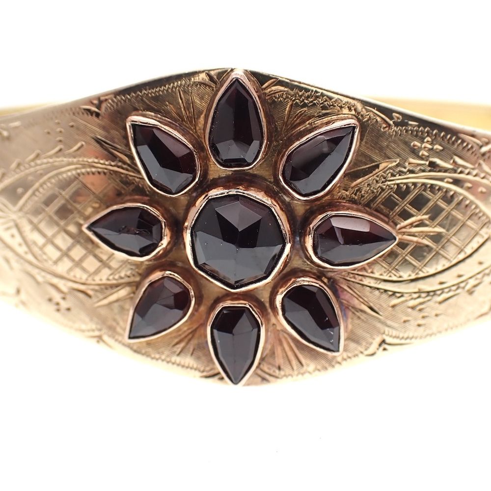 Vintage/antique gold clamp bracelet with garnet | Ø 59 mm