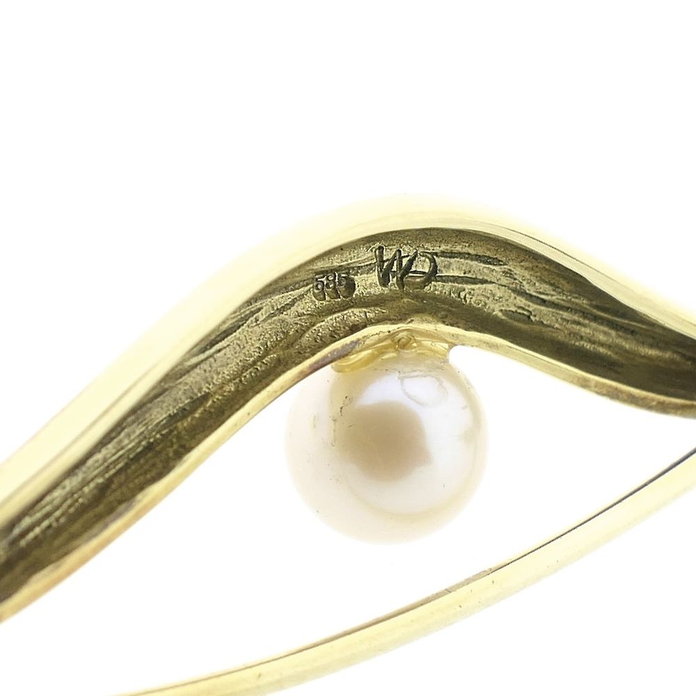Vintage gold brooch set with a cultured pearl. The pearl has a diameter of 5.6 mm. A beautiful accessory to complete your outfit. This beautiful brooch is crafted from 14-karat yellow gold (585/1000).