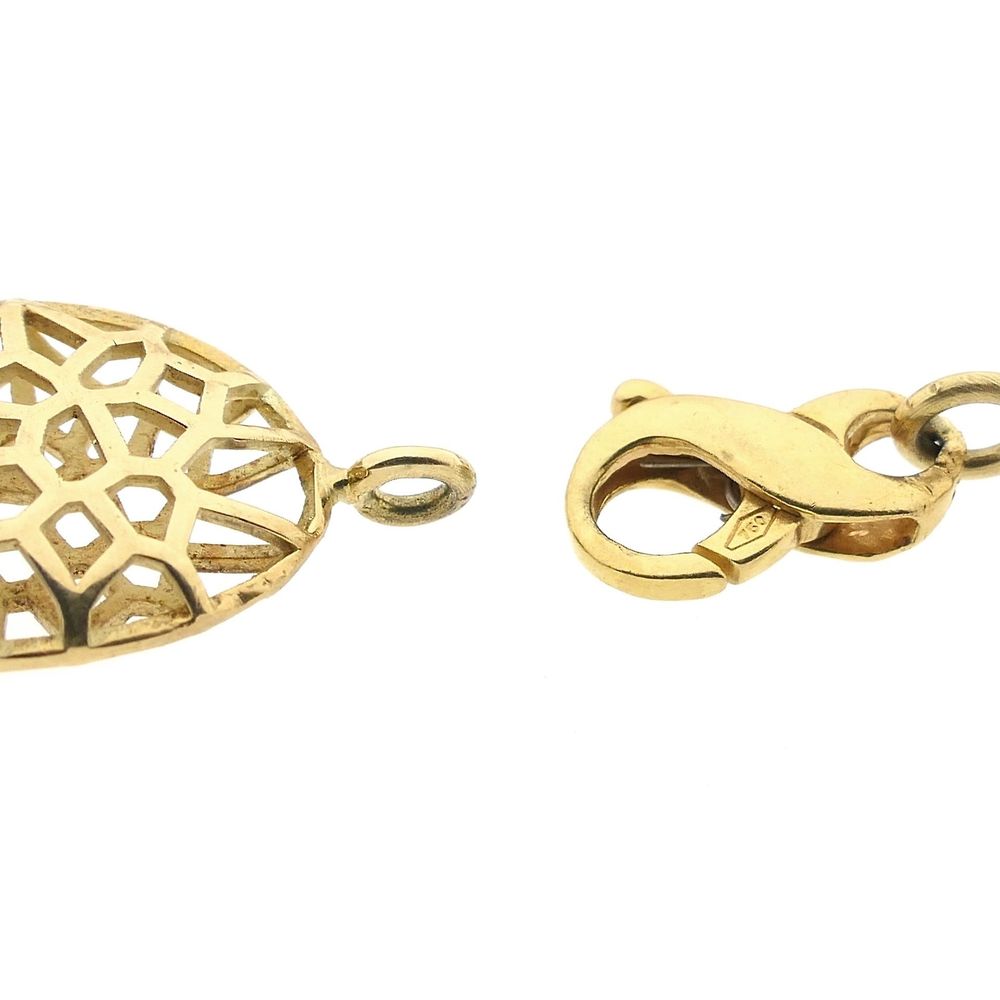Vintage gold fantasy link necklace. This unique and luxurious necklace features an openwork design. The front is smooth, and the back is fully matted. Crafted from 18-karat yellow gold (750/1000), it is a true gemstone.