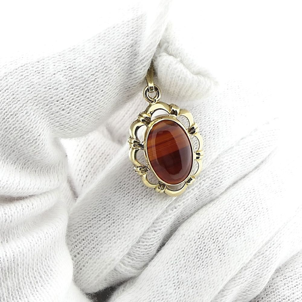 Vintage gold pendant set with an oval cabochon-cut band agate. The setting gives the pendant a vintage/antique look. The pendant is crafted from 14-karat yellow gold (585/1000).