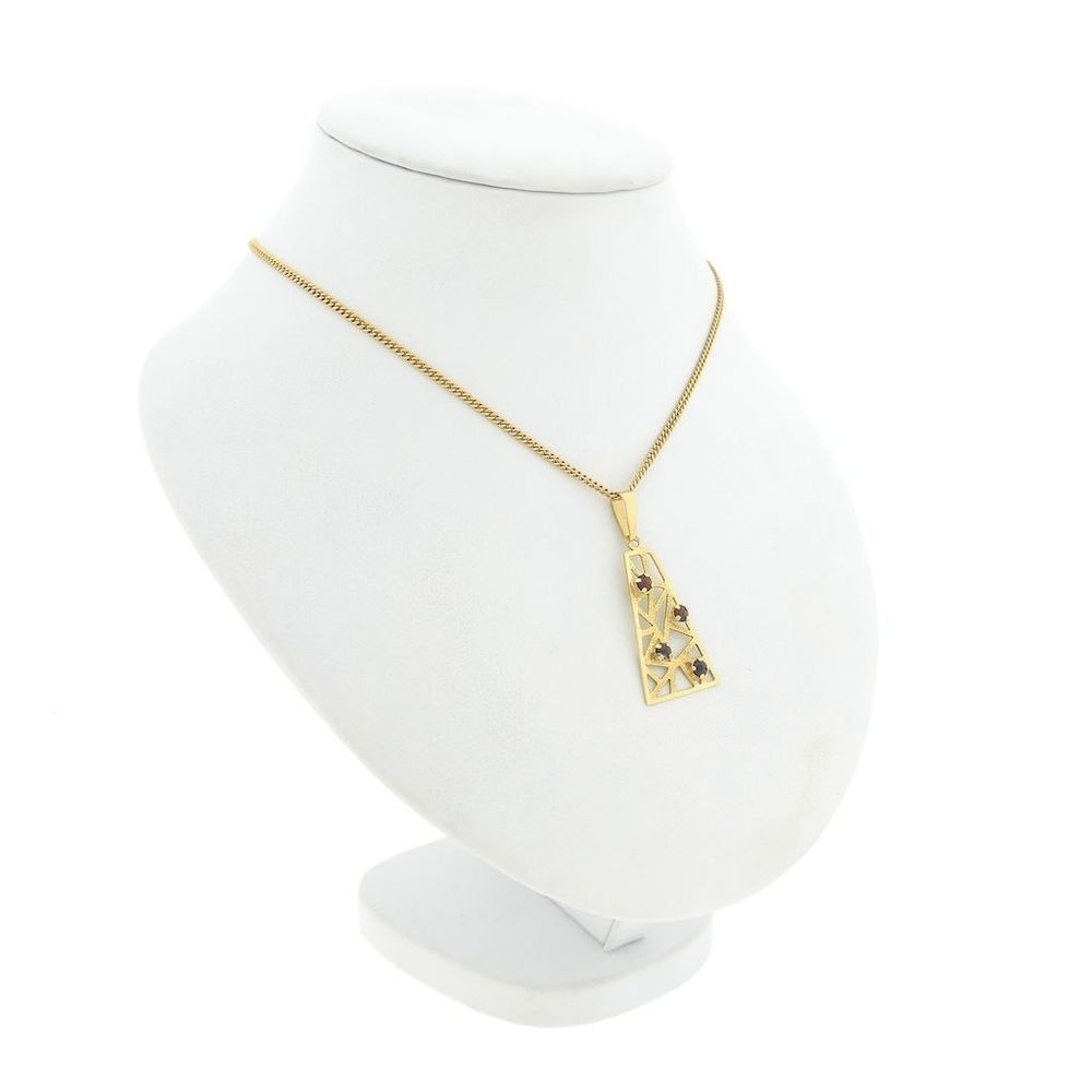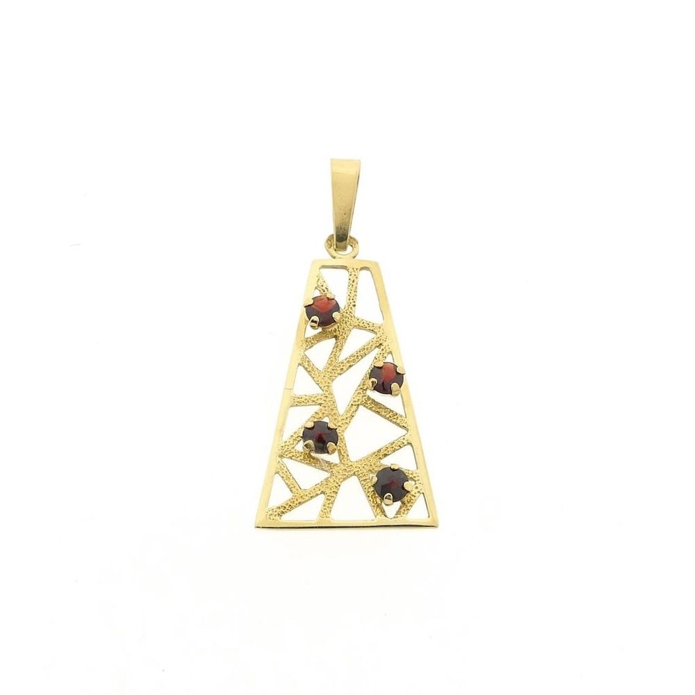 Vintage gold pendant with four rose-cut garnets. The stones are a beautiful dark red and slightly translucent. The pendant's design has an elegant appearance. Crafted from 14-karat yellow gold (585/1000), it is a true gemstone.