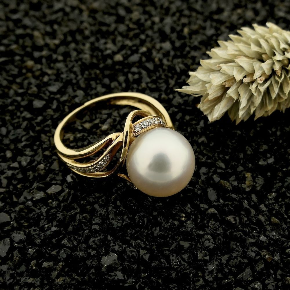 Vintage gold ring with pearl and diamonds; 0.13 ct.