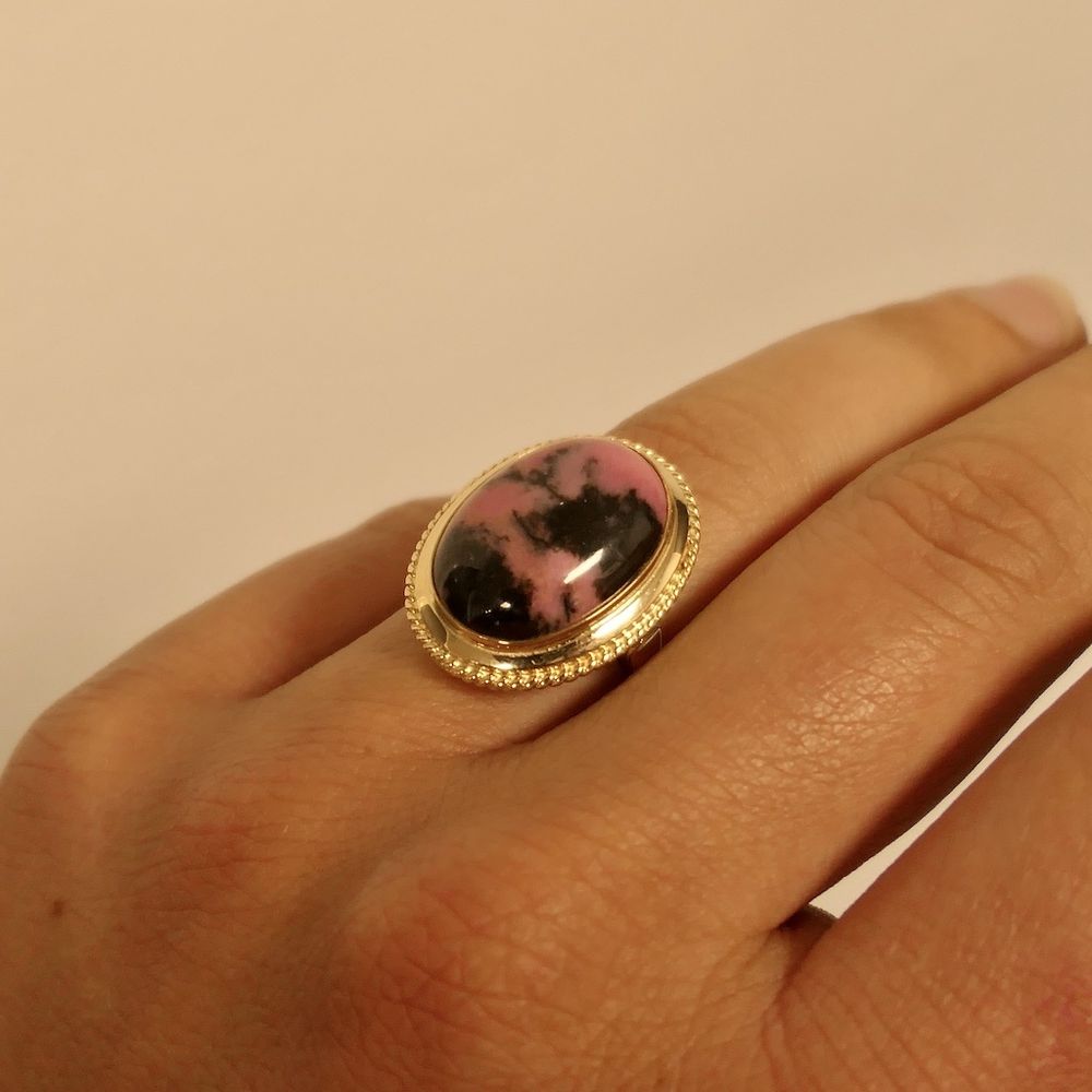 Vintage gold ring with rhodonite