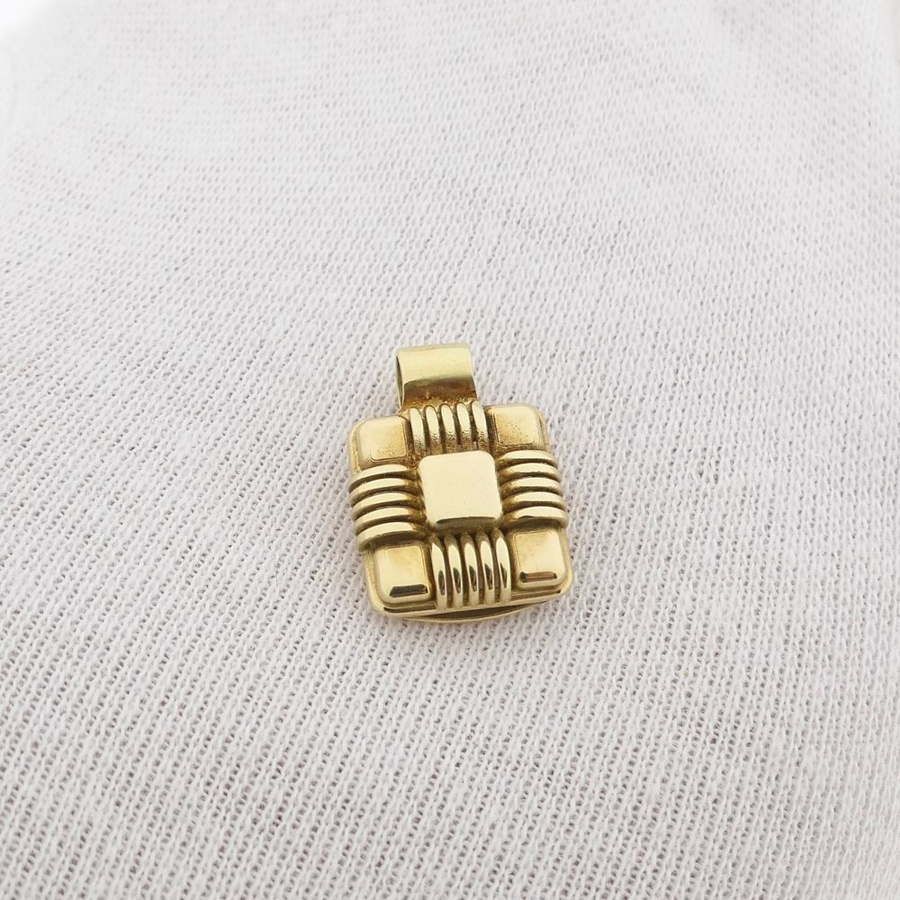 Vintage gold square pendant with a pattern. The pendant features nine small squares resembling a gift. A beautiful pendant crafted from 14-karat yellow gold (585/1000).
