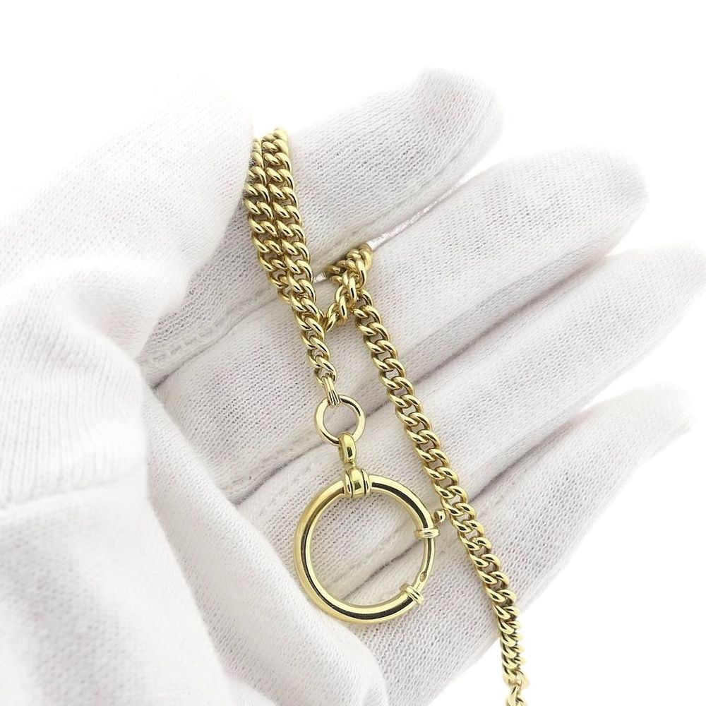 Solid gold watch chain (chatelaine) for a pocket watch. The chatelaine is made with 3.8 mm wide gourmet links. It is a vintage accessory from the first half of the 20th century. The chatelaine is crafted from 14-gauge yellow gold (585/1000).