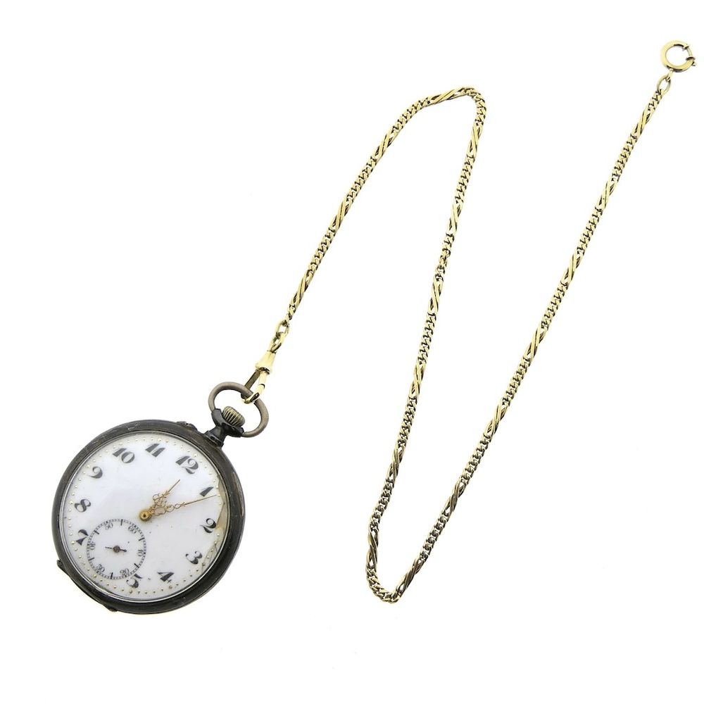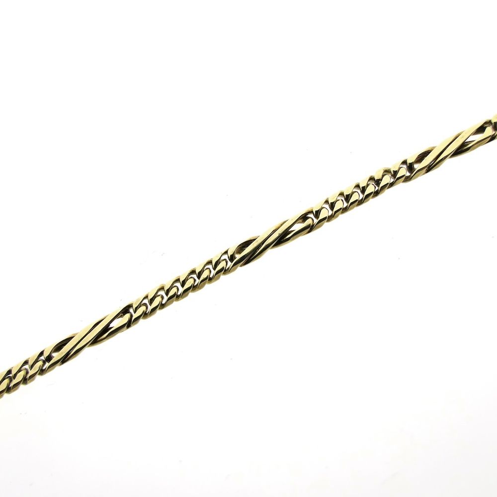 Gold watch chain (chatelaine). The chatelaine is made with Figaro links. The spring ring has an inner diameter of 5.7 mm. It is a vintage accessory from the first half of the 20th century. The chatelaine is made of 14-gauge yellow gold (585/1000).
