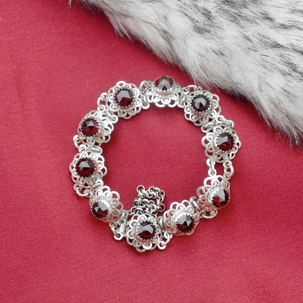 Vintage silver bracelet with garnet; Boat bracelet | Ø 56 mm