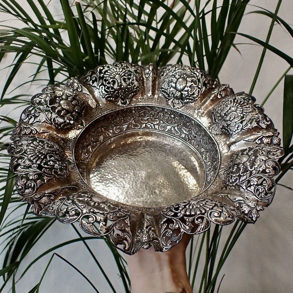 Vintage silver Djokja fruit bowl | Indonesian silverware