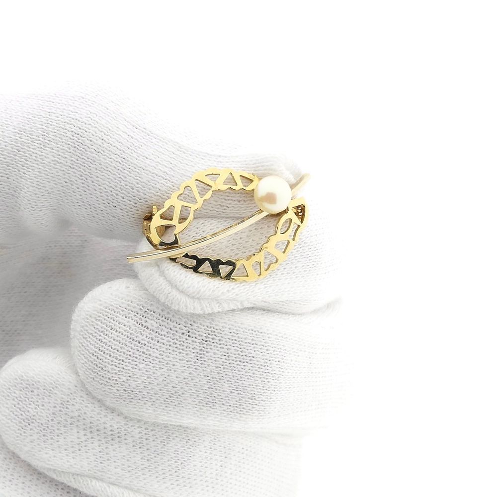 Vintage two-tone gold brooch with pearl