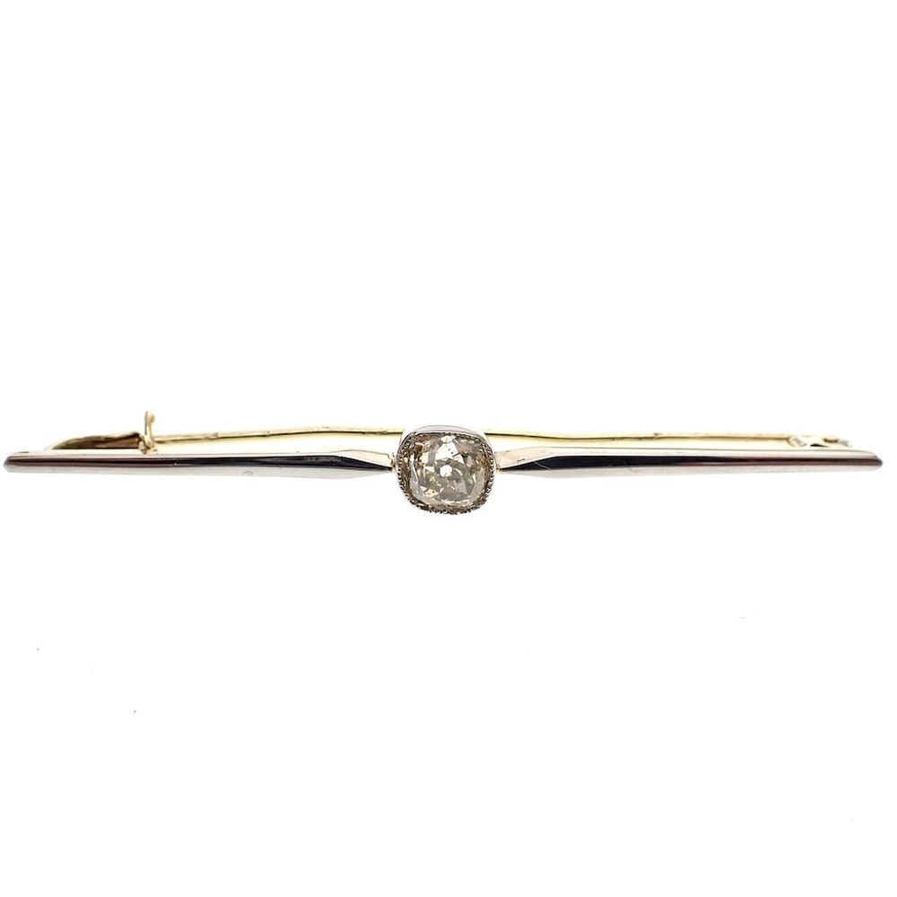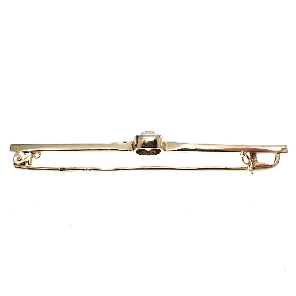 Vintage white gold long narrow brooch with moissanite