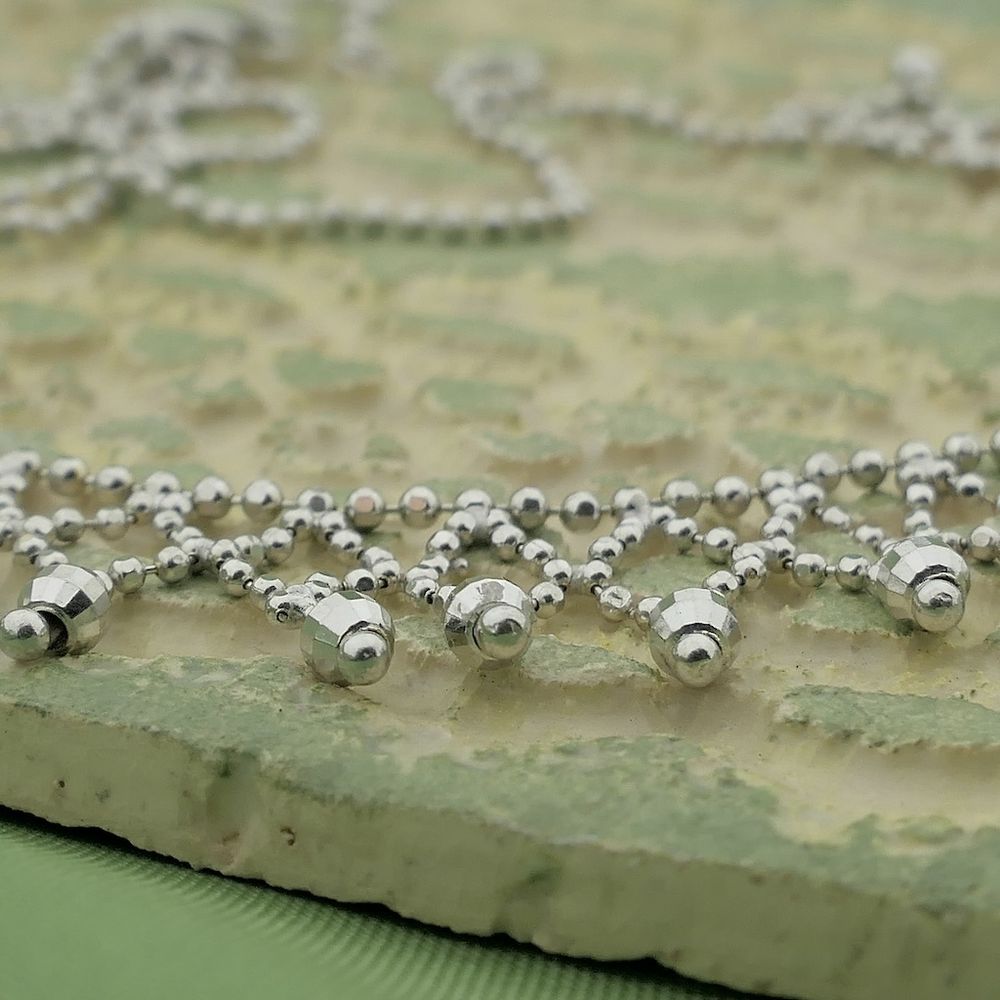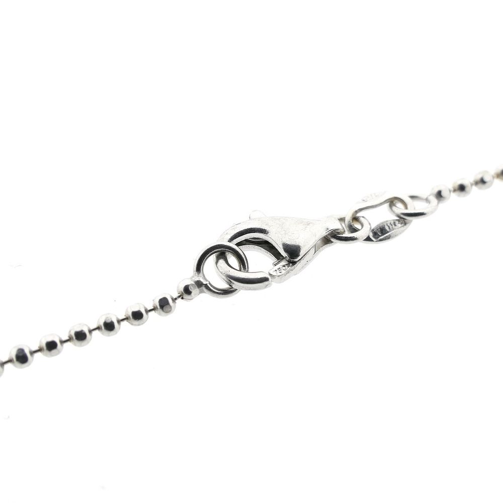 A beautiful gold necklace with beads. The necklace features a lace-like pattern. An elegant piece of jewelry. Crafted from 18-karat white gold (750/1000), it is a statement piece.