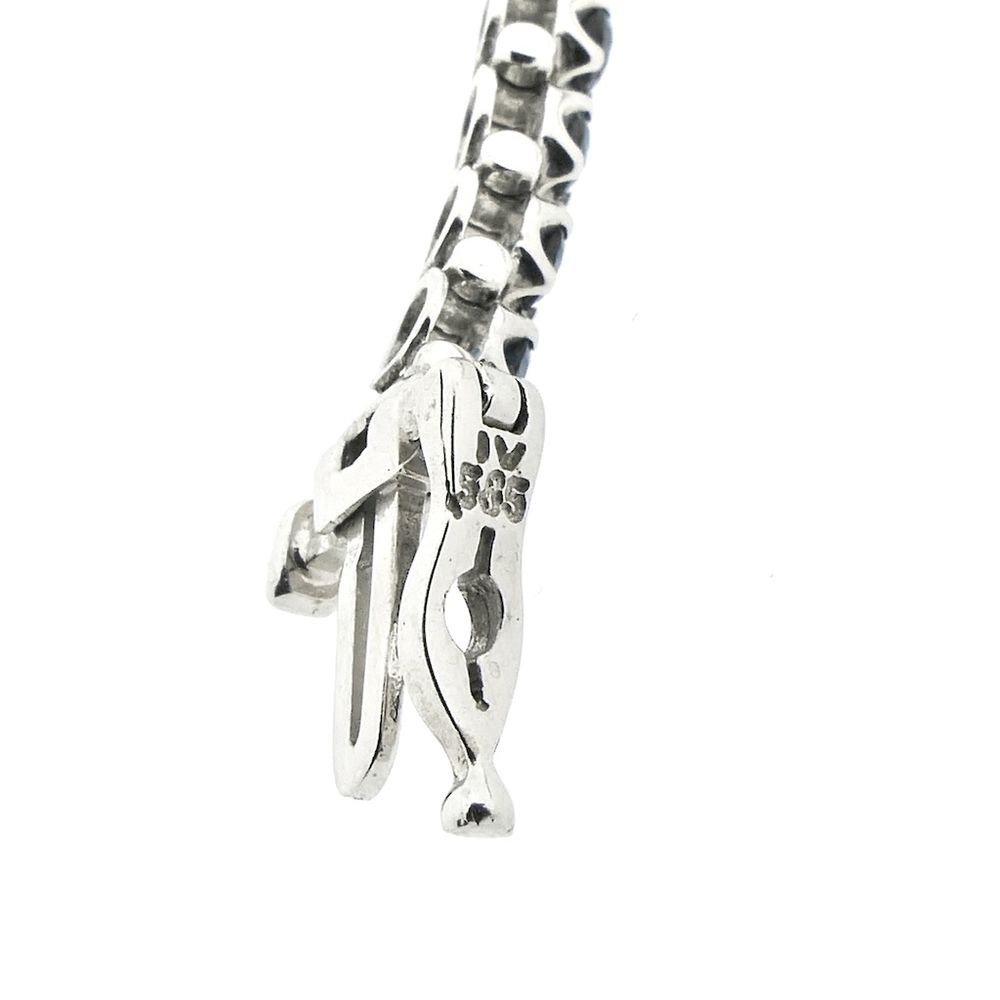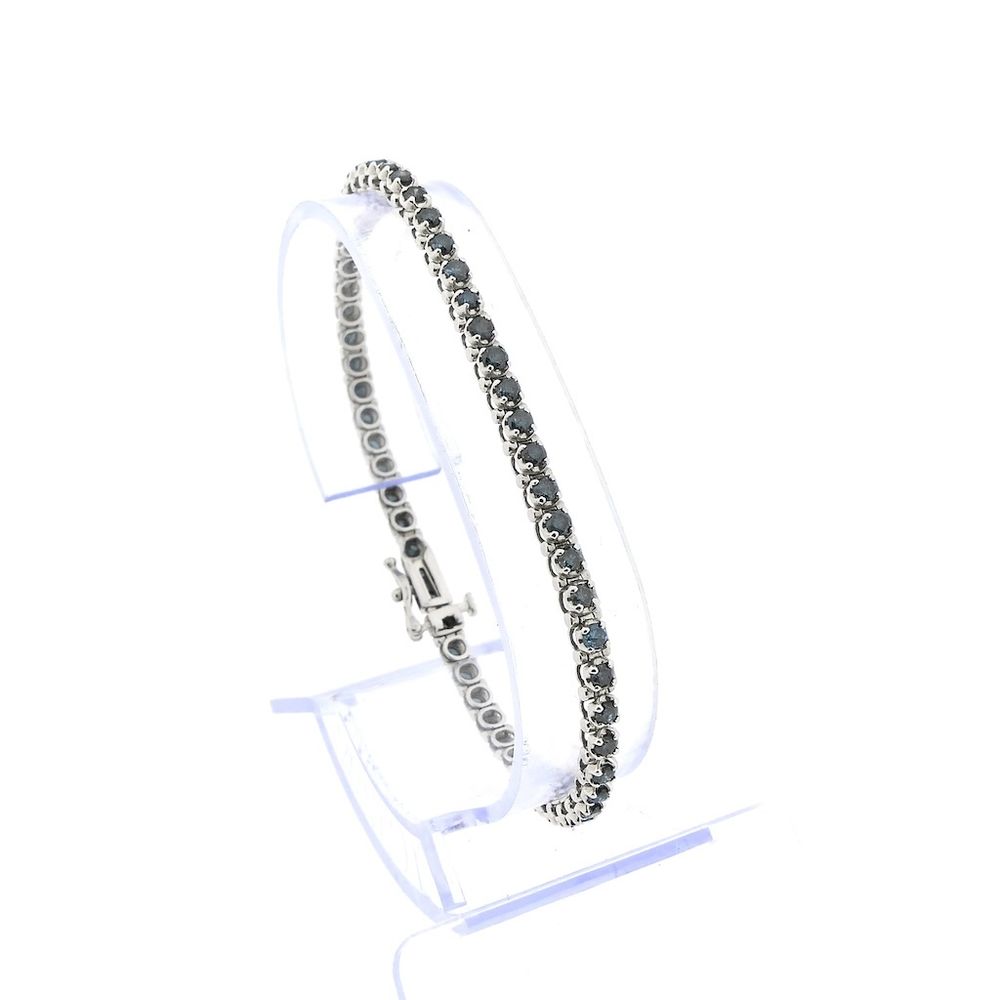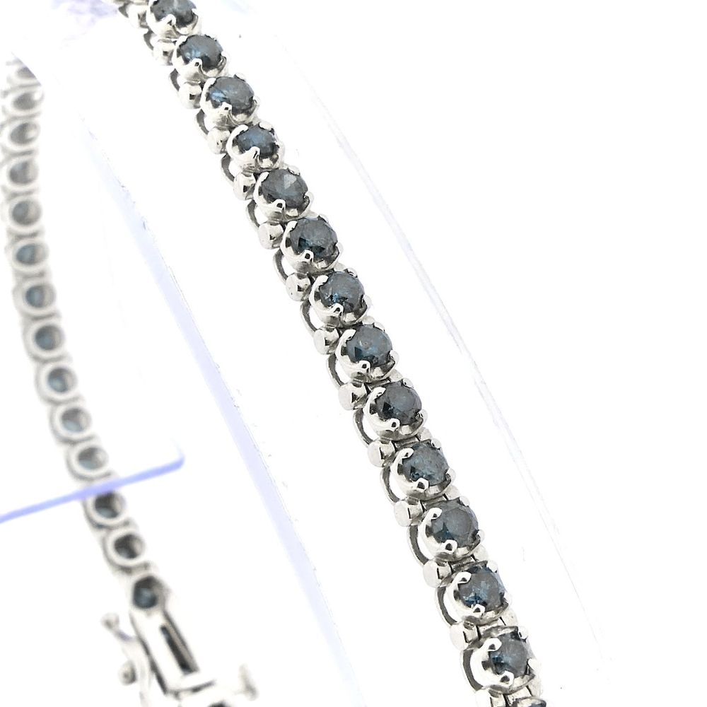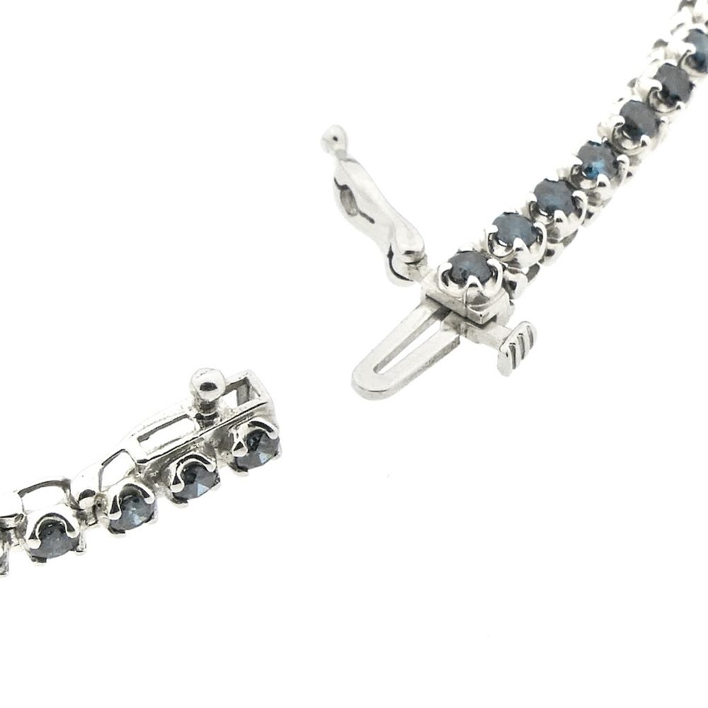 White gold fantasy link bracelet set with blue moissanite stones weighing 2.75 ct. The bracelet has an elegant, vintage look and fits beautifully around the wrist. It closes with a box clasp with a safety hook and is crafted from 14-karat white gold (585/1000).