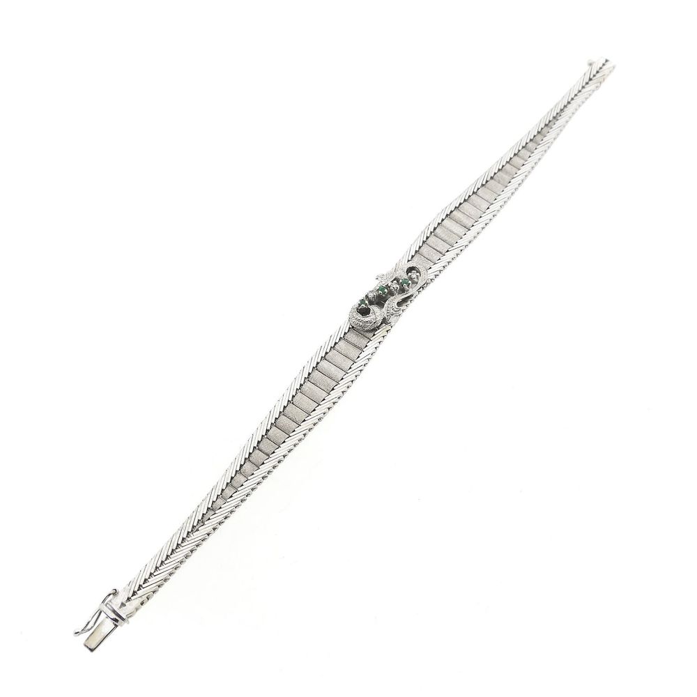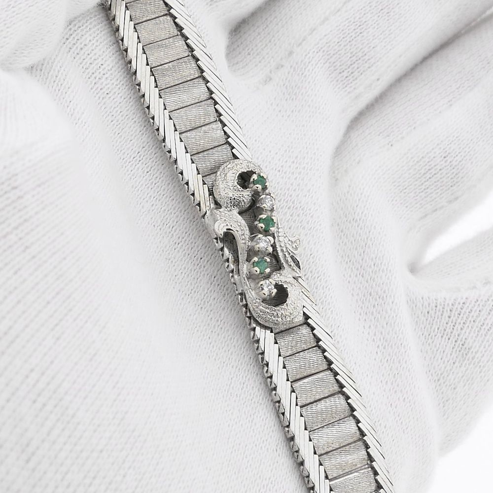White gold bracelet with emerald and diamonds; 0.045 ct.