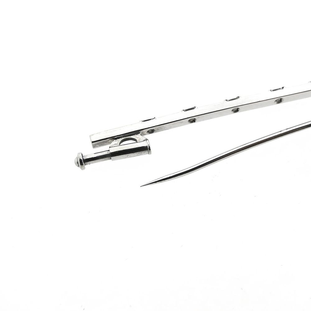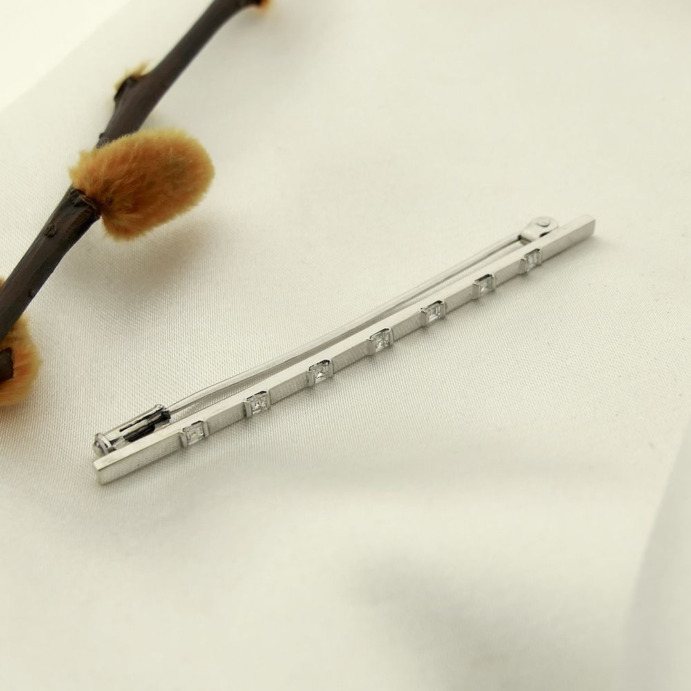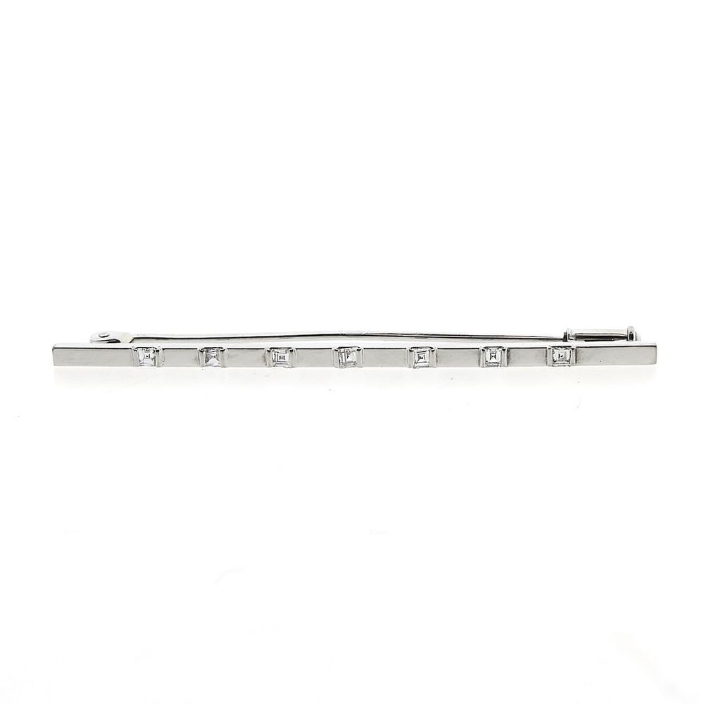 White gold brooch with square-cut diamonds. The diamonds are bright white, giving the brooch an elegant look. This beautiful brooch is crafted from 14-karat white gold (585/1000).