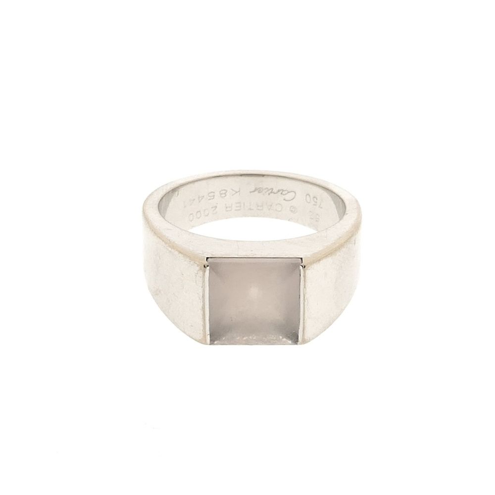 White gold solitaire ring from the luxury brand Cartier, set with a moonstone. A beautiful ring with a solid white gold band. The ring is hallmarked with the Cartier hallmarks and a serial number. The ring is crafted from 18-karat white gold (750/1000). This luxury French brand is not afraid to think outside the box. They create powerful and timeless jewelry. The everyday is special, and the ordinary becomes precious. Cartier, whose name is synonymous with openness and curiosity, finds beauty in everything, from fine jewelry to timepieces and perfumes.