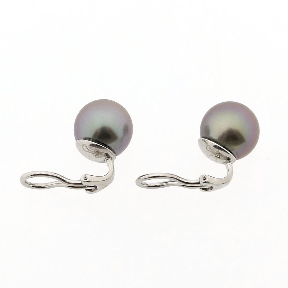 White gold clip-on earrings with Tahitian pearl