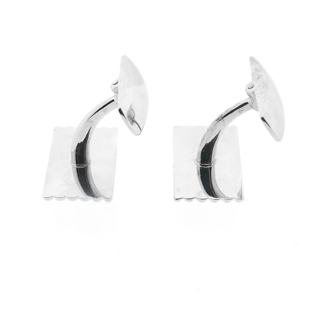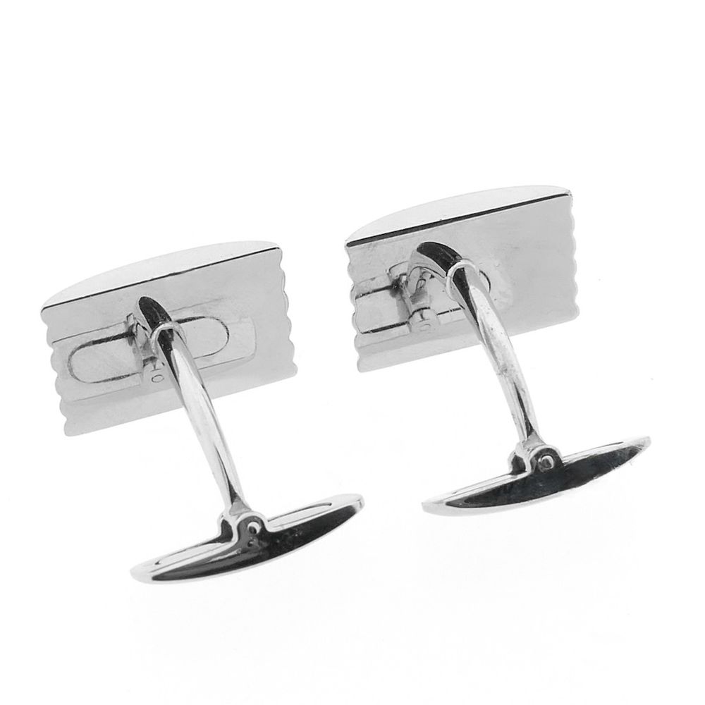 Witouden set of stylish cufflinks with a ribbed finish. The cufflinks have a rotating bar, making them easy to attach to a man's shirt. These timeless accessories are crafted from 18-karat gold (750/1000).