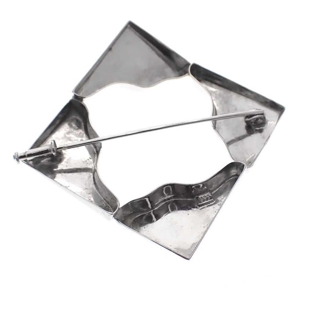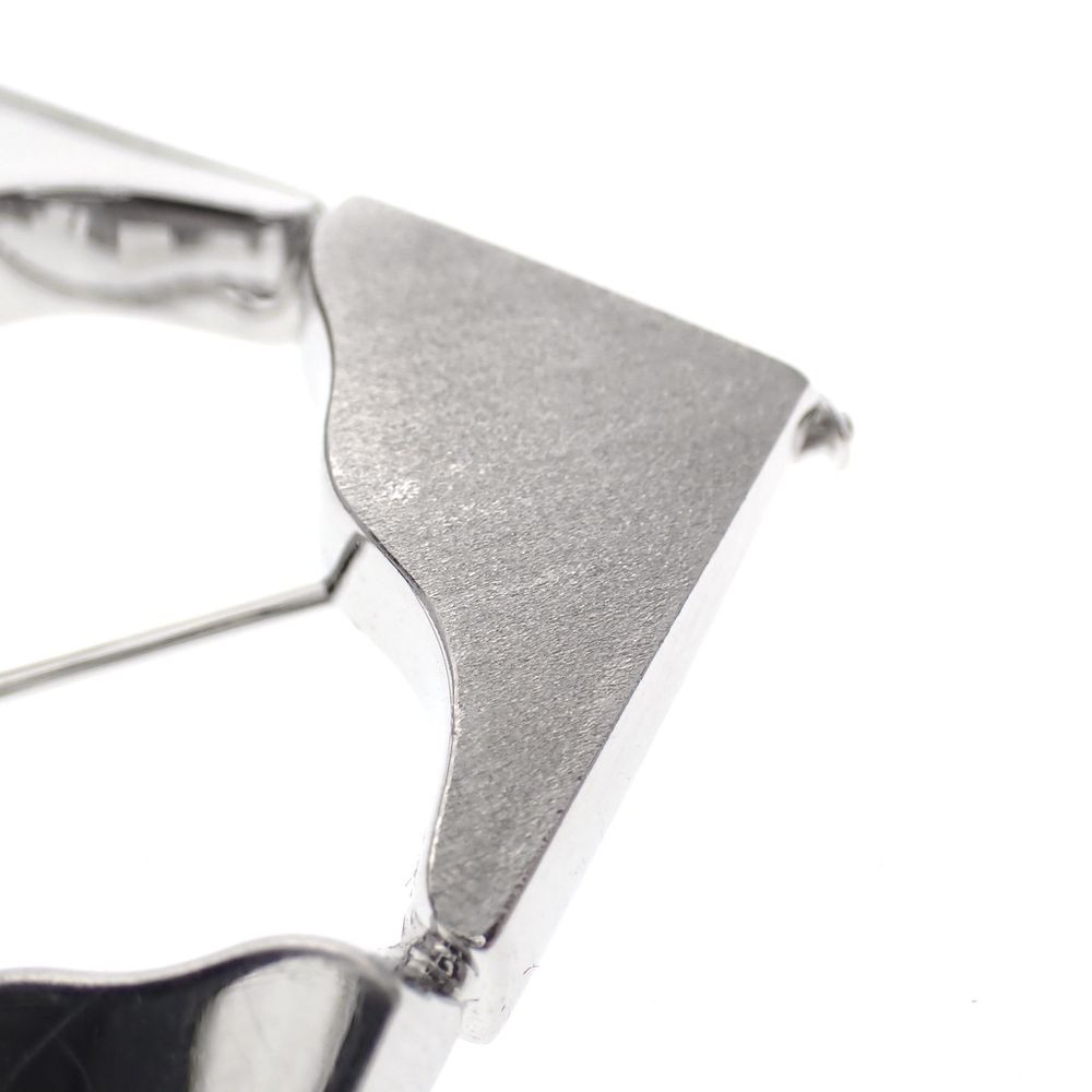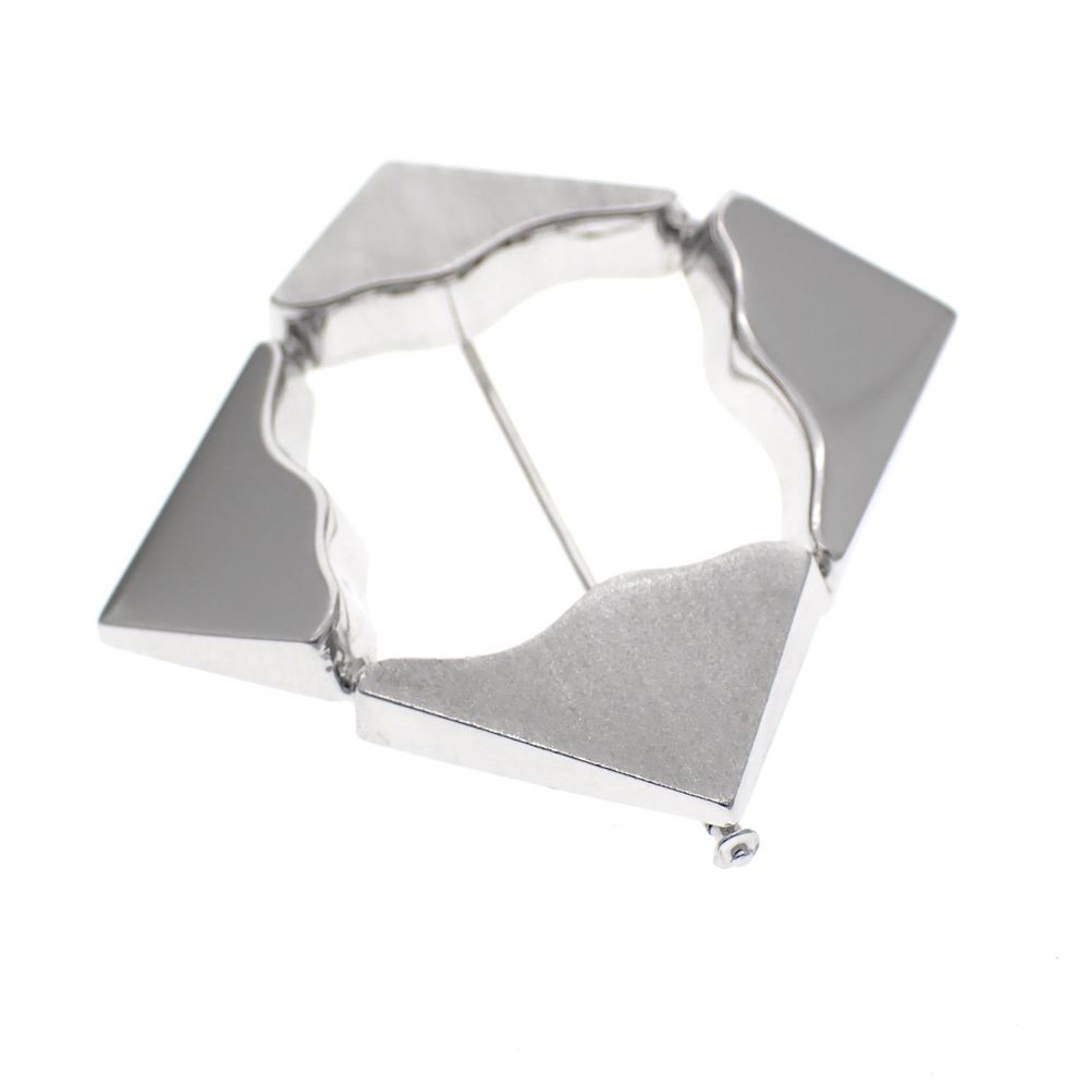 White gold designer brooch. This brooch features a unique design of an open square made up of four puzzle pieces. Two of the puzzle pieces are matted. The brooch is crafted from 14-karat white gold (585/1000).