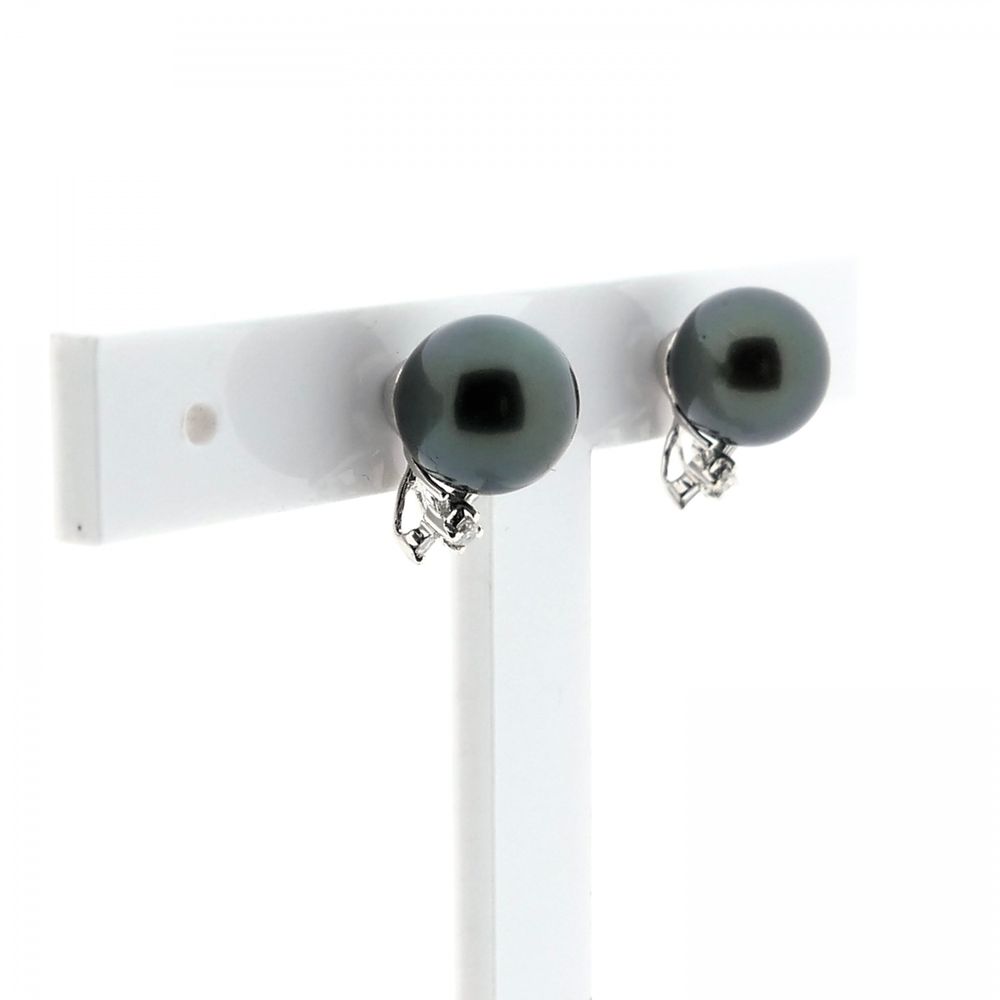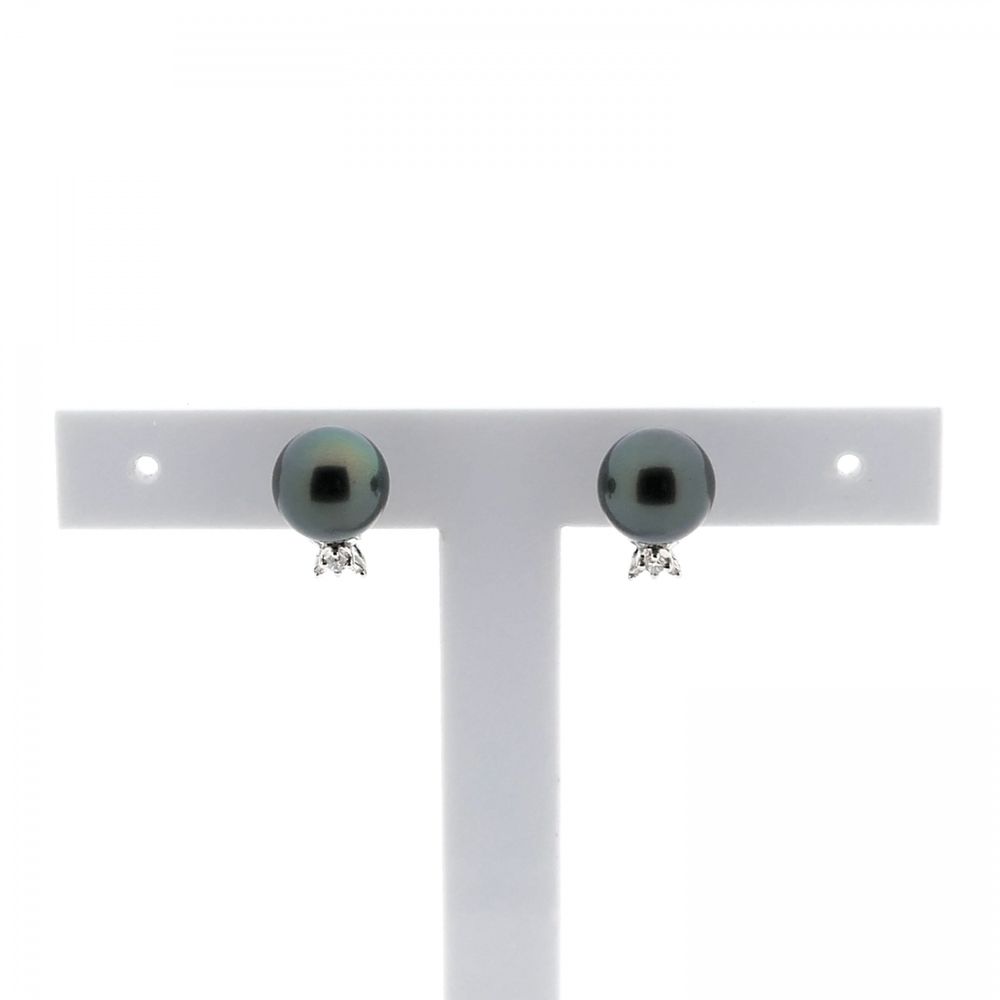 White gold earrings with Tahitian pearl and diamonds; 0.04 ct.