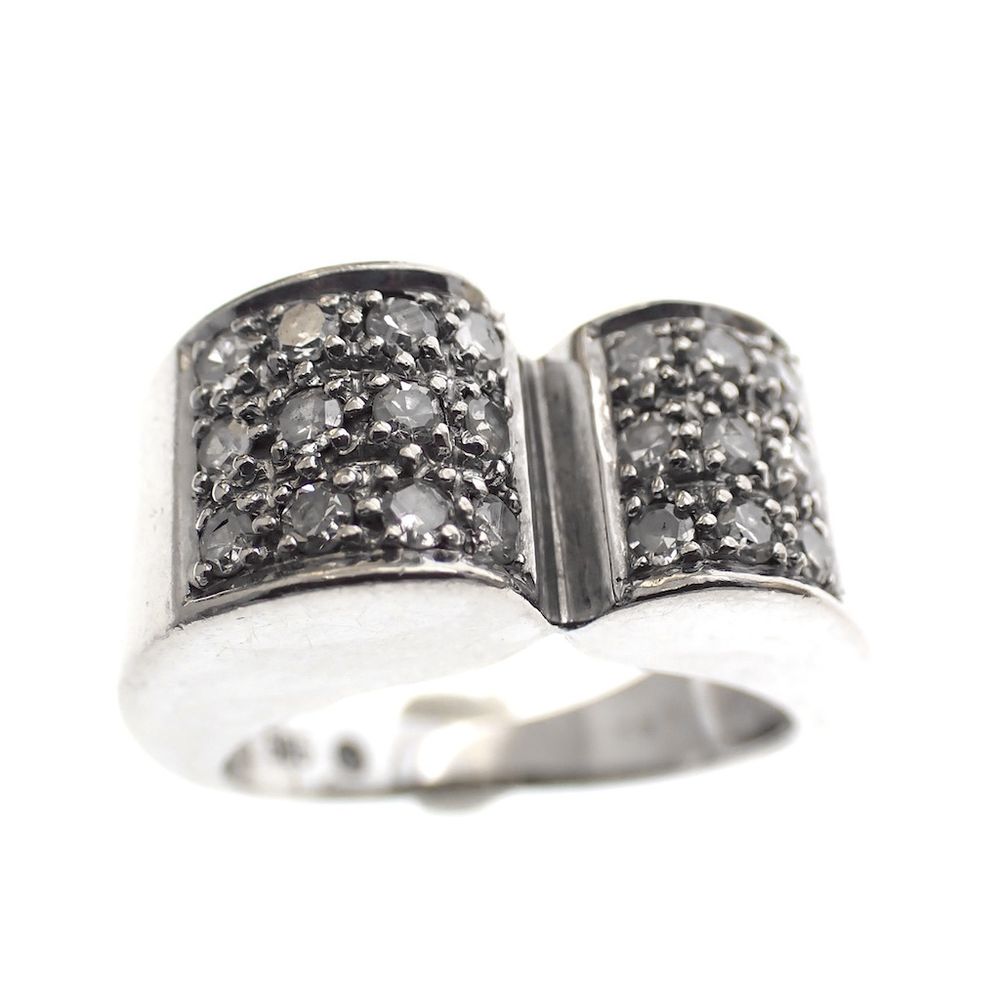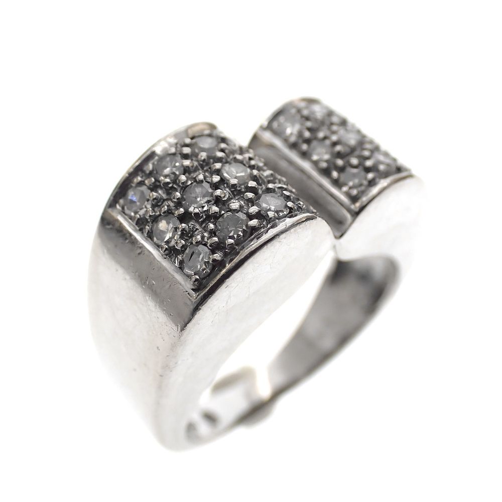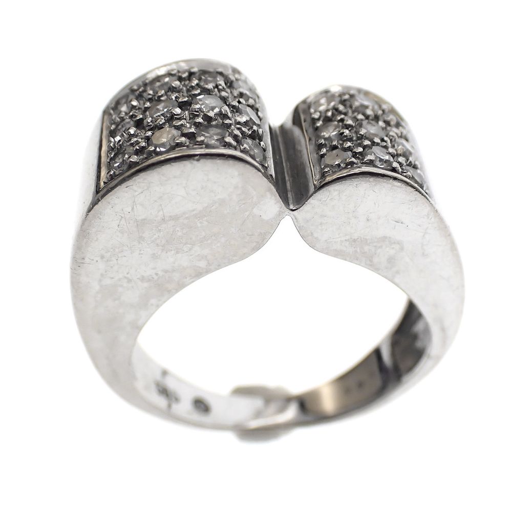 White gold diamond ring with a fantasy design. The brilliant-cut natural diamonds are pavé-set and have a total weight of 0.42 ct. This striking women's ring is crafted from 14-karat white gold (585/1000).