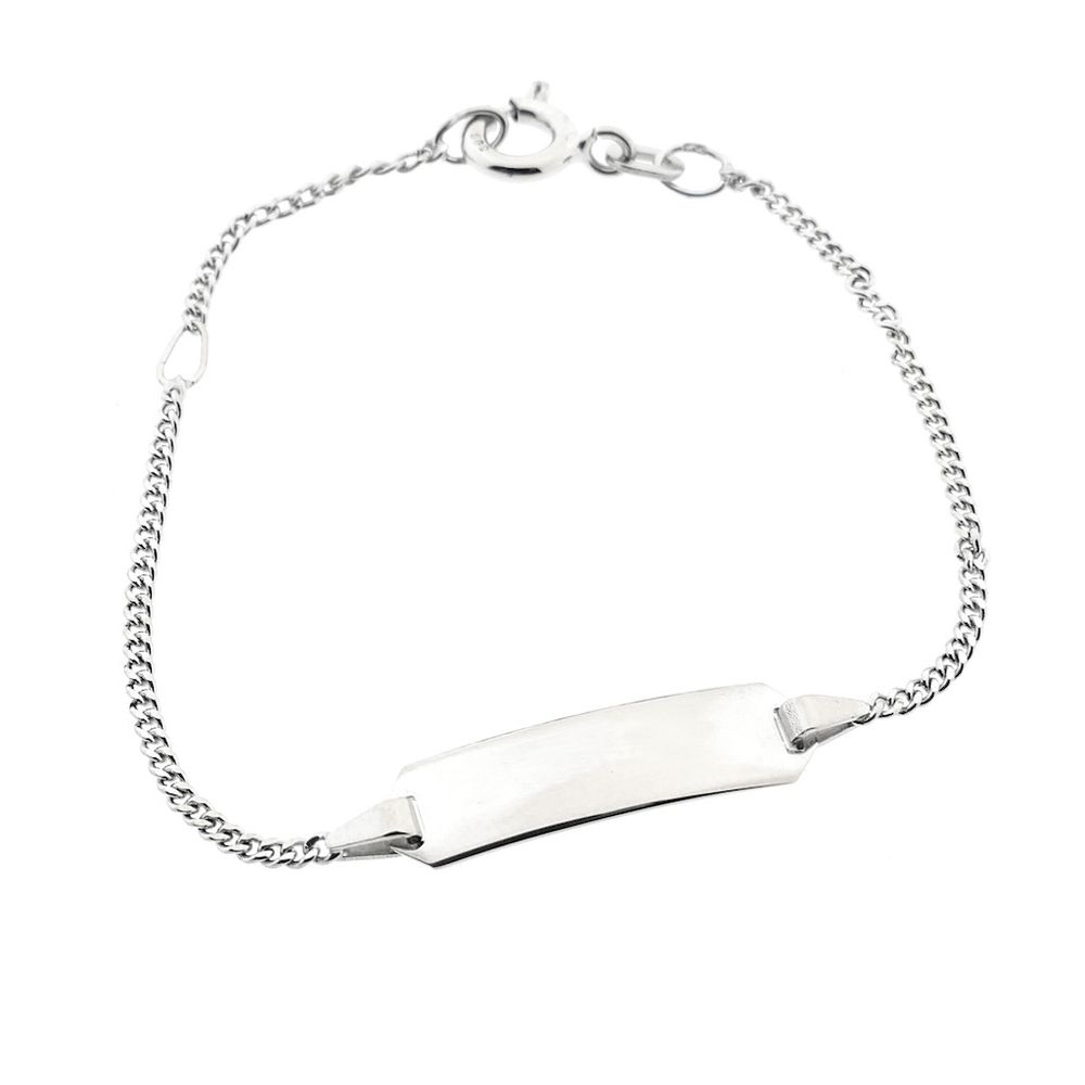 White gold gourmet link children's bracelet with engraving plate