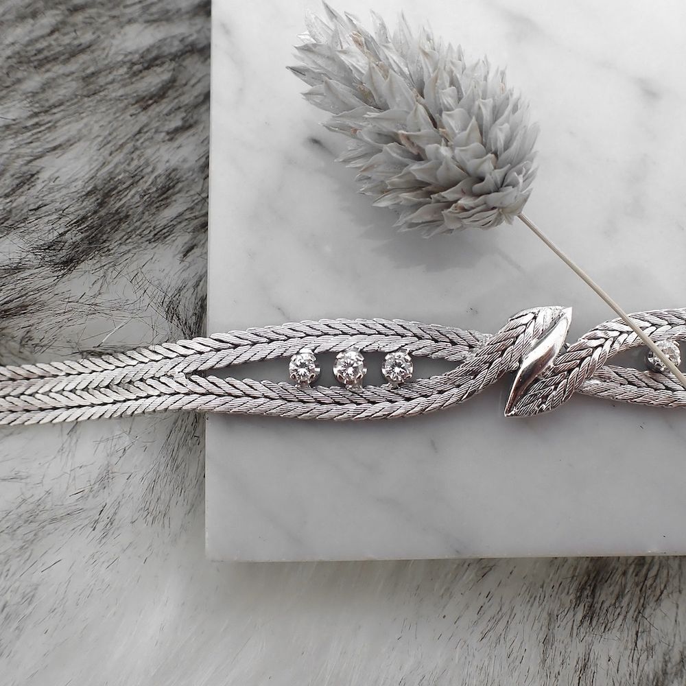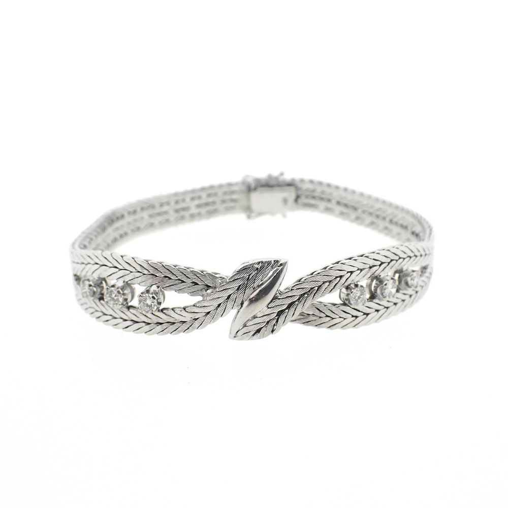 White gold herringbone link bracelet with diamonds; 0.48 ct.