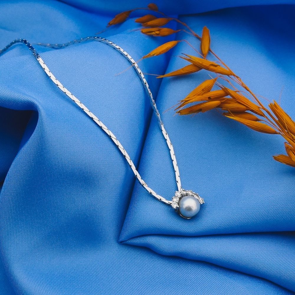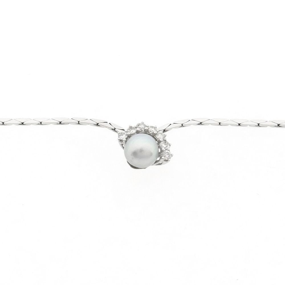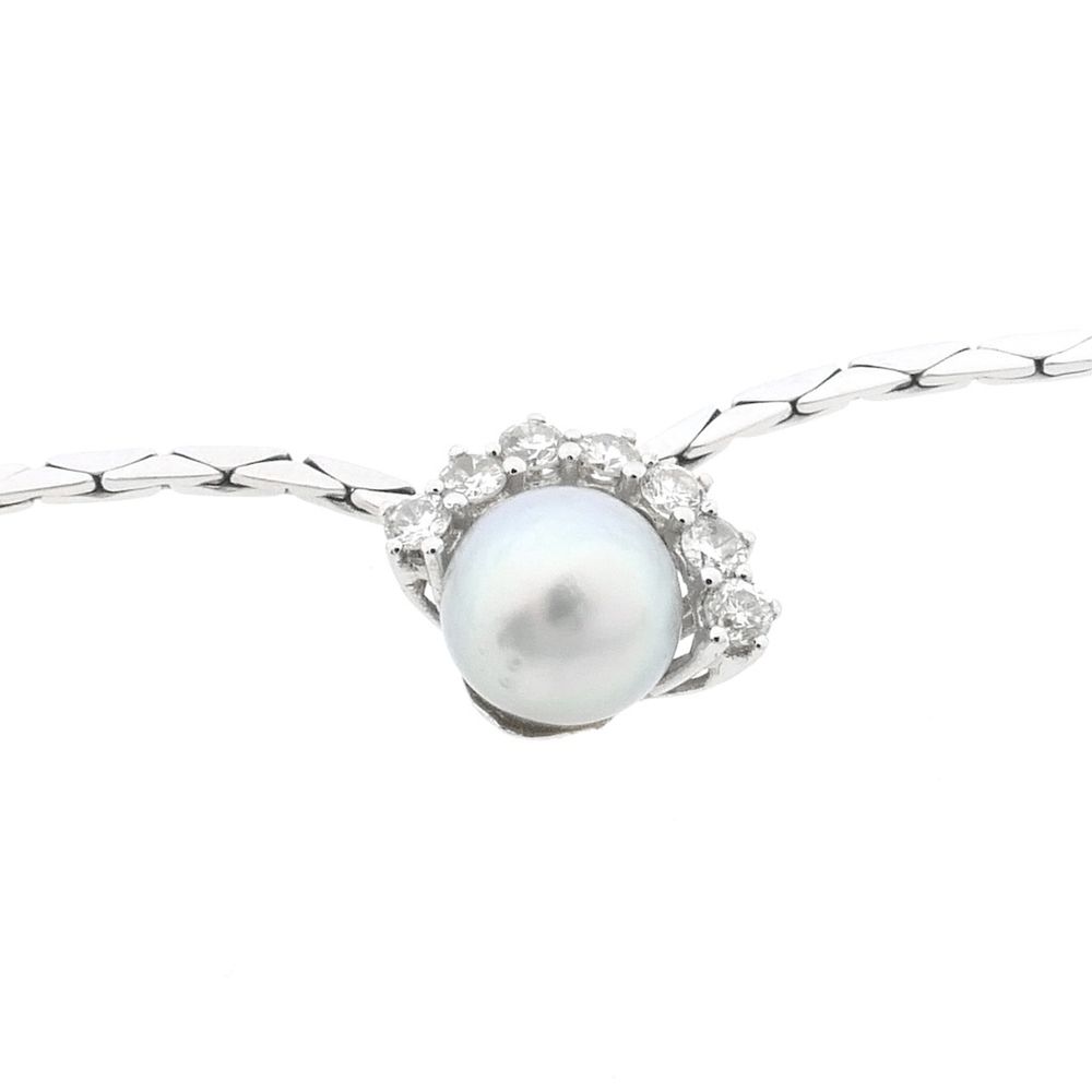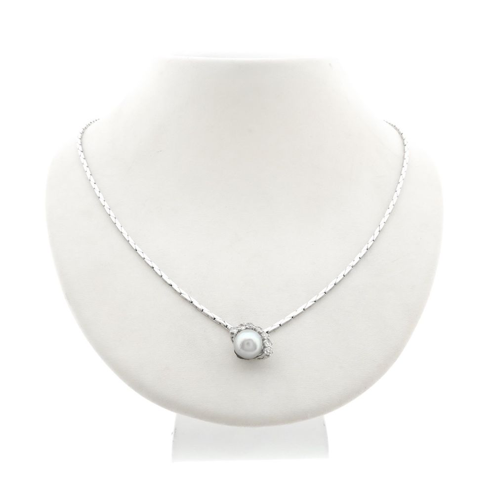 White gold necklace with Tahitian pearl and diamonds; 0.35 ct.
