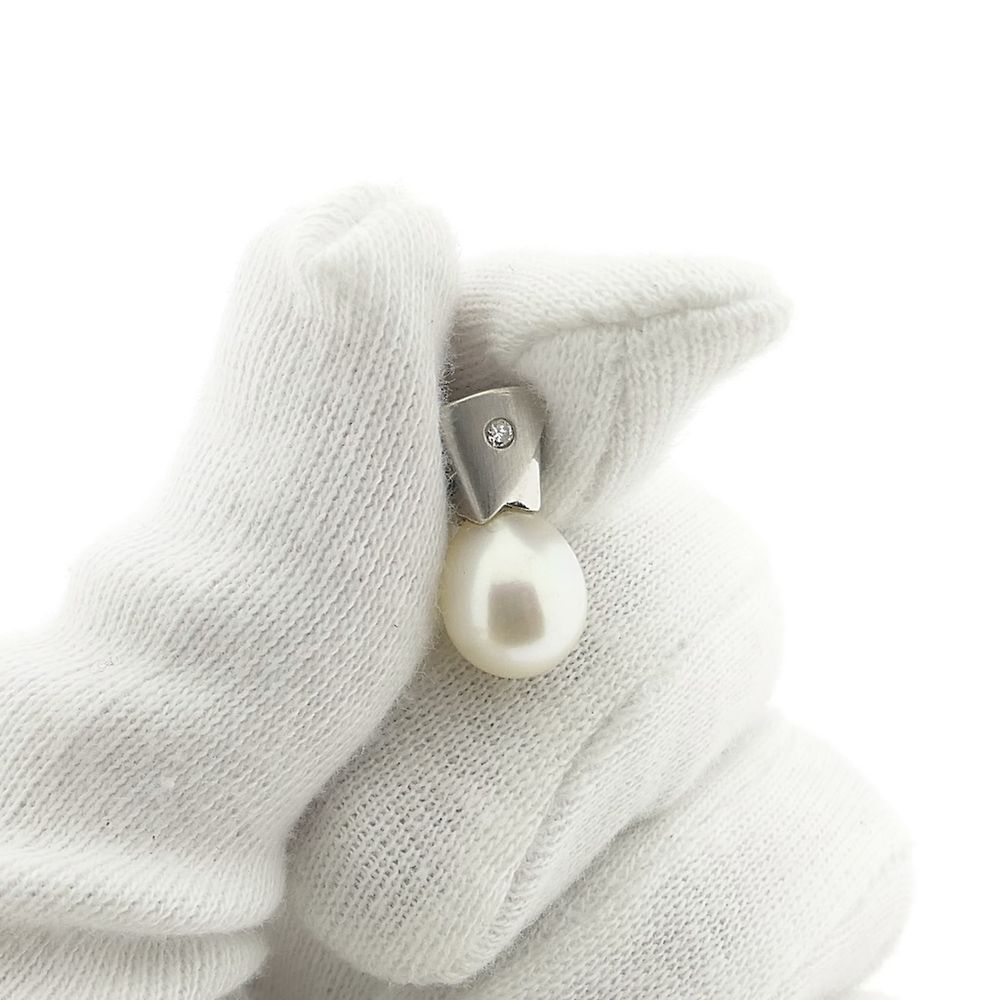 White gold pendant set with a large cultured pearl and diamond. The pendant is partially matted. A striking and elegant pendant made of 14-karat white gold (585/1000).