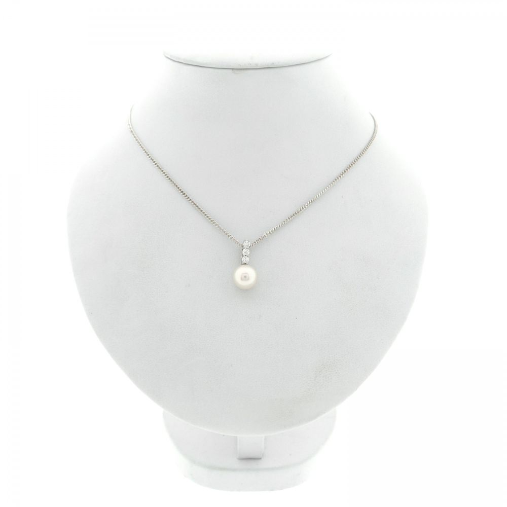White gold pendant set with a total of 0.21 ct. of diamonds. The pendant also features an 8.8 mm pearl. The pendant is crafted from 18-karat white gold (750/1000).
