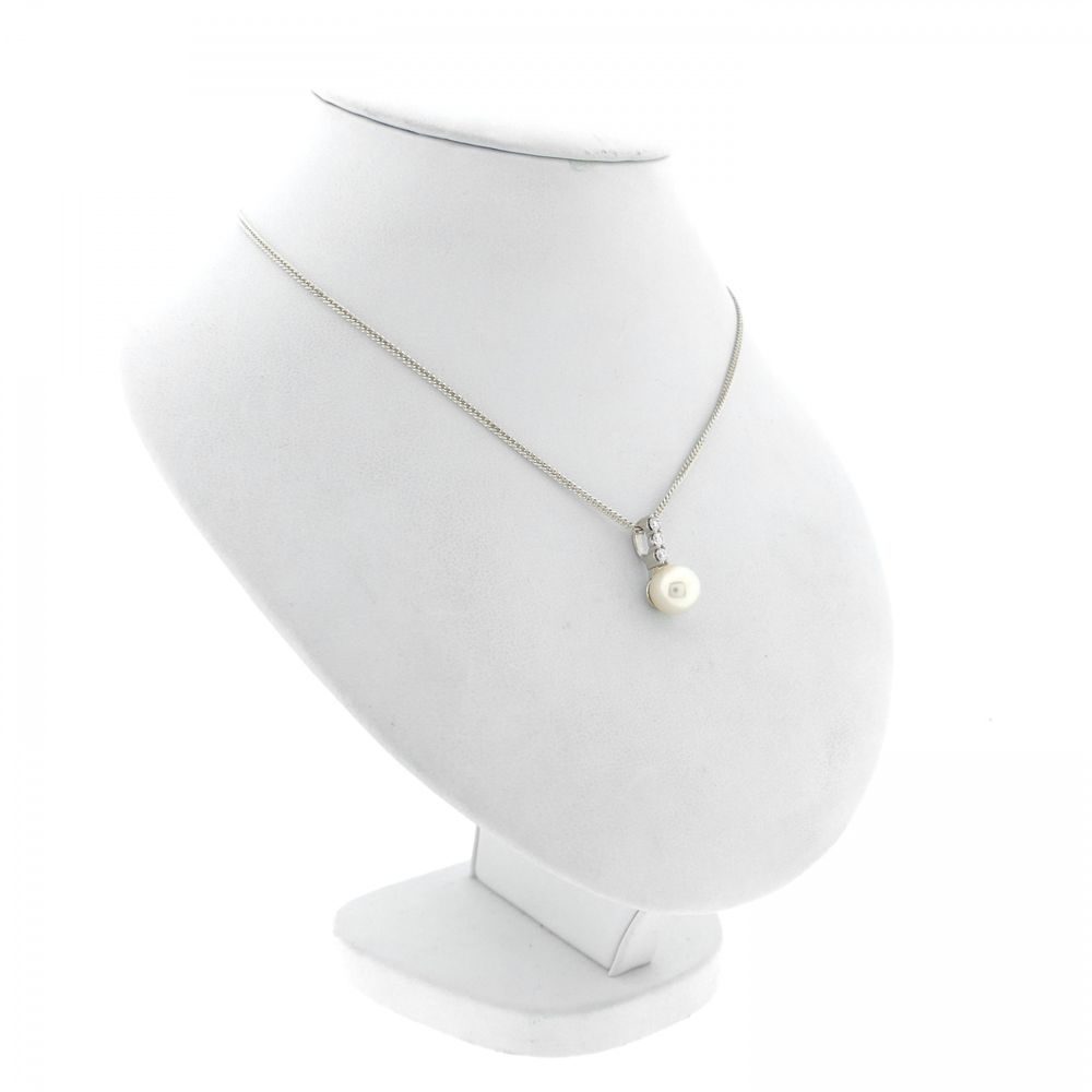 White gold pendant with pearl and diamonds; 0.21 ct.
