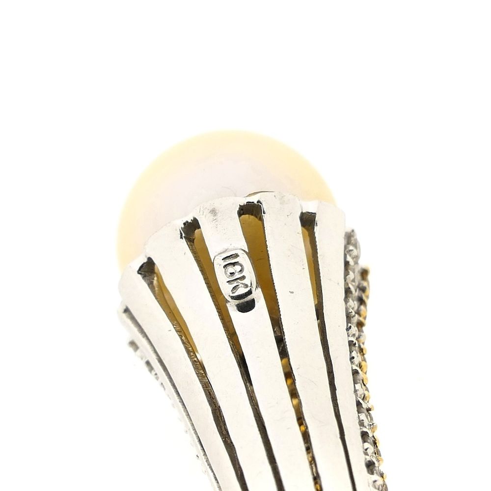 White gold pendant set with a total of 1.71 ct. of diamonds, including 54 white stones and 45 fancy yellow stones. The pendant also features a large pearl with a diameter of 12.6 mm. A piece of jewelry with a luxurious appearance. The pendant is crafted from 18-karat white gold (750/1000).