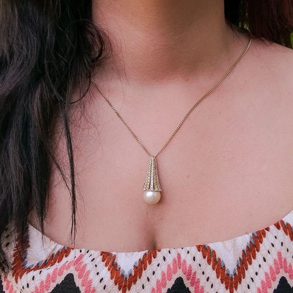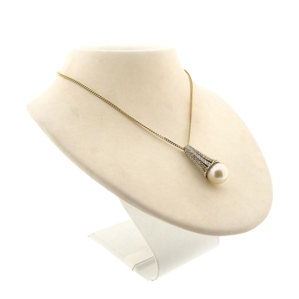 White gold pendant with pearl and diamonds; 1.71 ct.