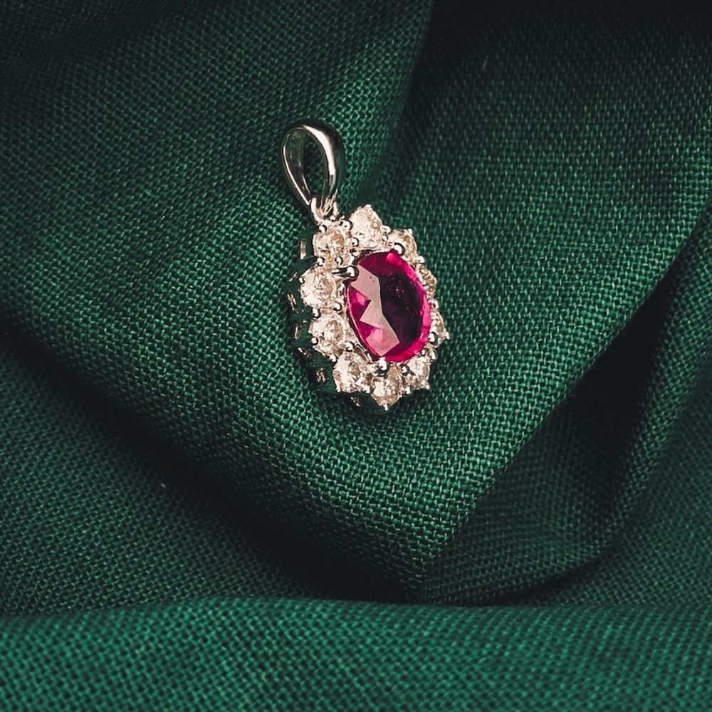 White gold pendant with pink spinel and diamond; 0.70 ct.